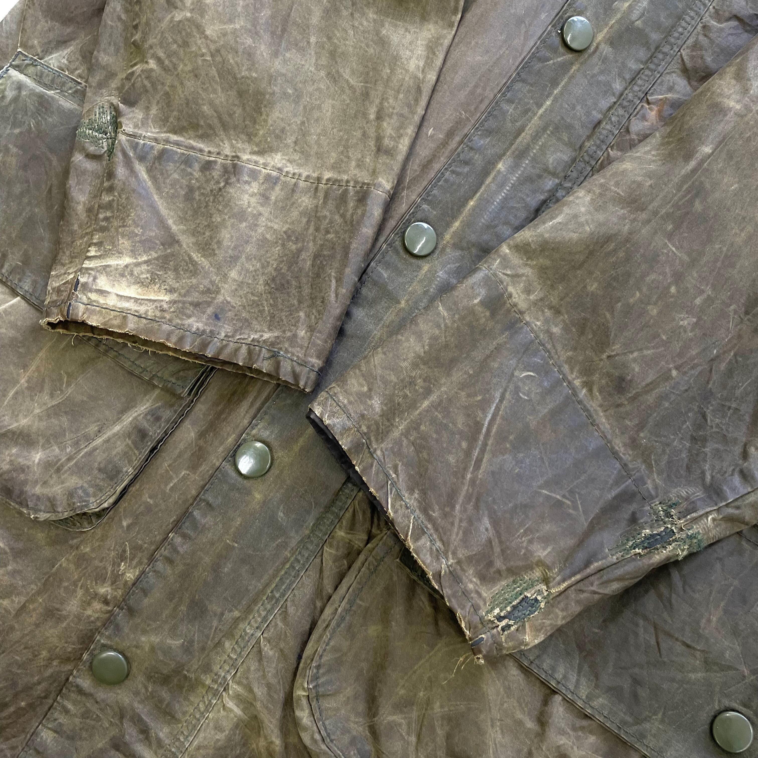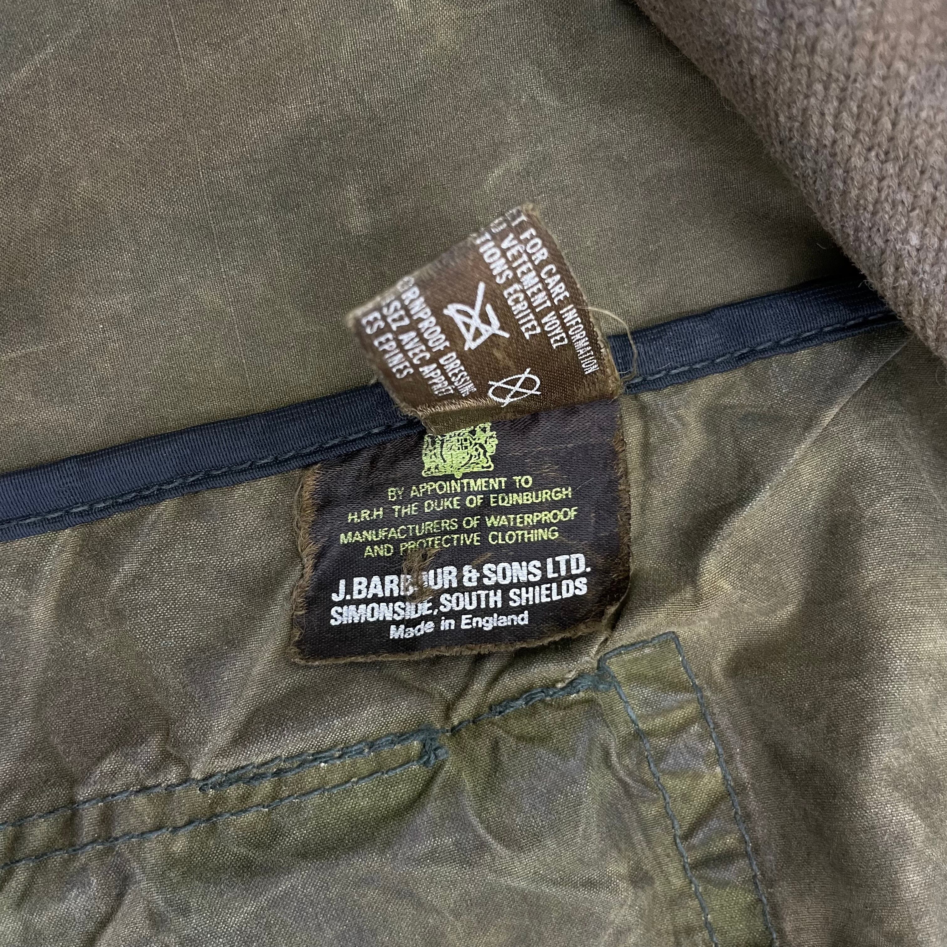 1970's~1980's Barbour “one crown” オリーブ オイルドジャケット ハーフコート アクリルファーベスト付き ゲームフェアー バブアー 1クラウン 1ワラント ENGLAND製 イングランド製 70s 80s 70年代 80年代 ユーロビンテージ vintage 古着 1332