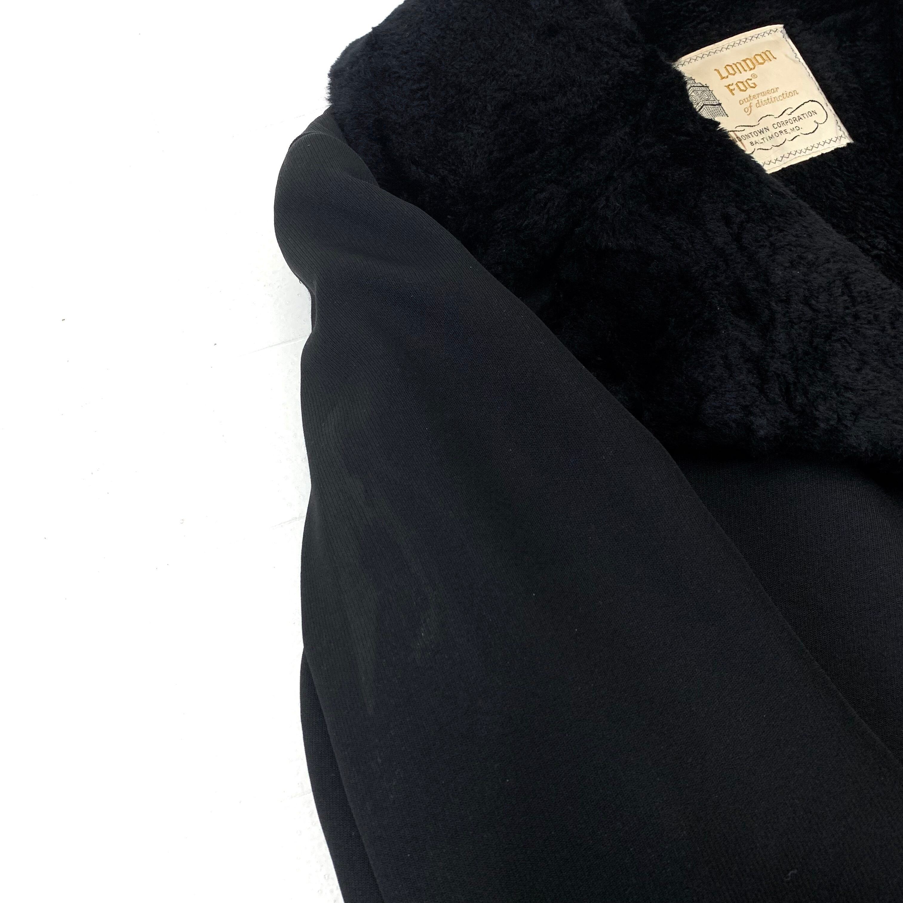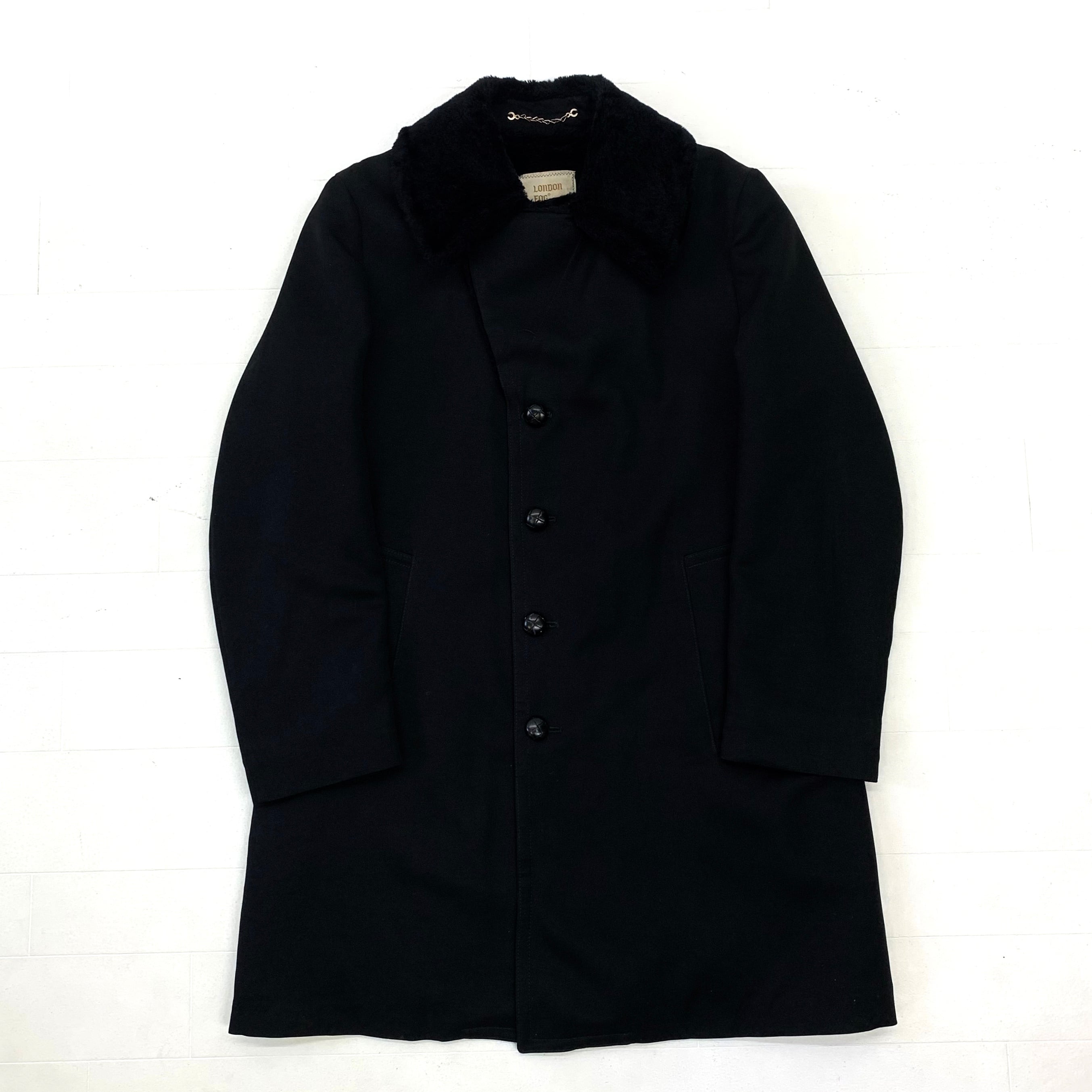 0421/ 1970's black gang coat ブラック ギャングコート ポリエステル?ギャバジン 襟ボア ロンドンフォグ 70s 70年代 vintage 古着
