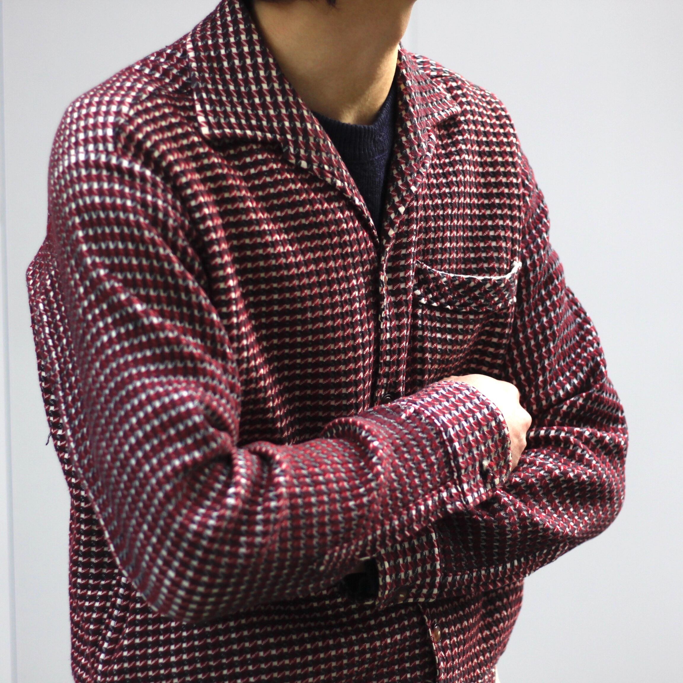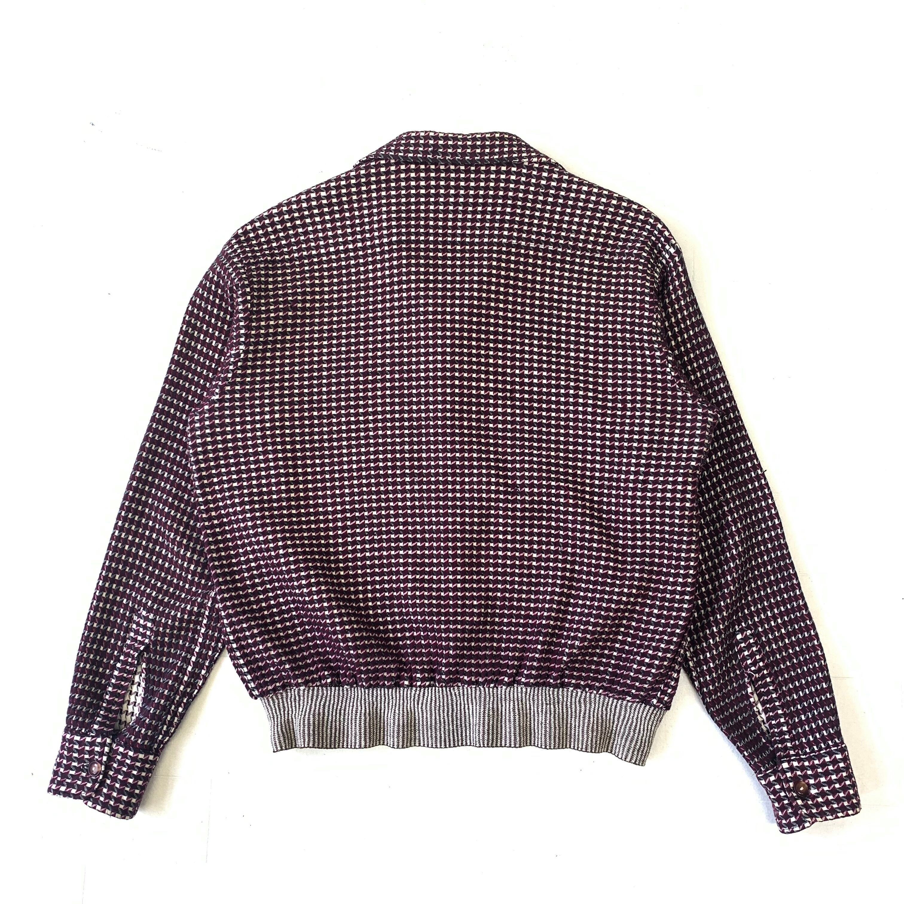 0437 / 1950's French jacquard fabric shirt jacket ボルドー イタリアンカラー ジャカード 織り柄 シャツジャケット 50s 50年代 euro vintage ユーロビンテージ 古着