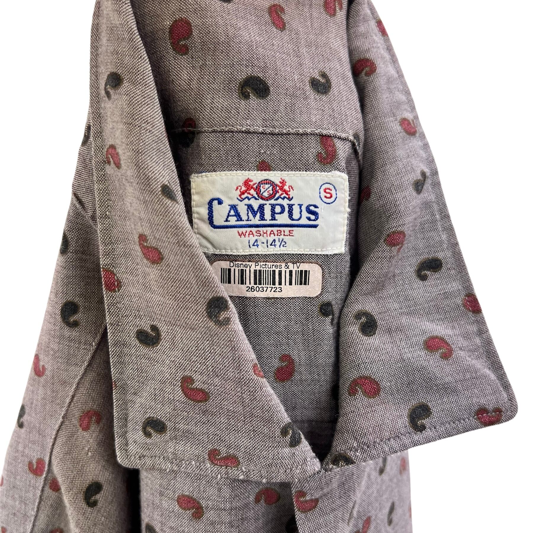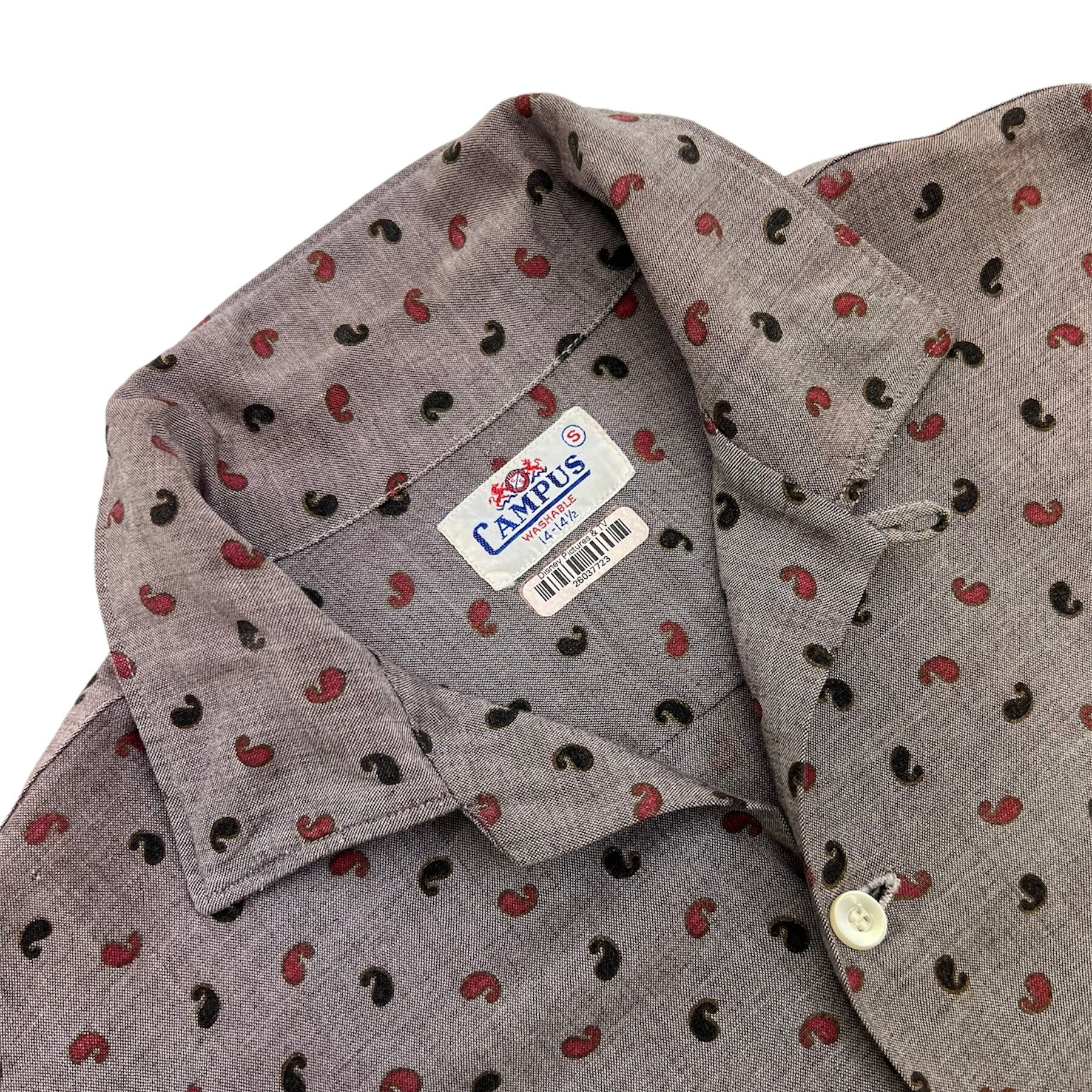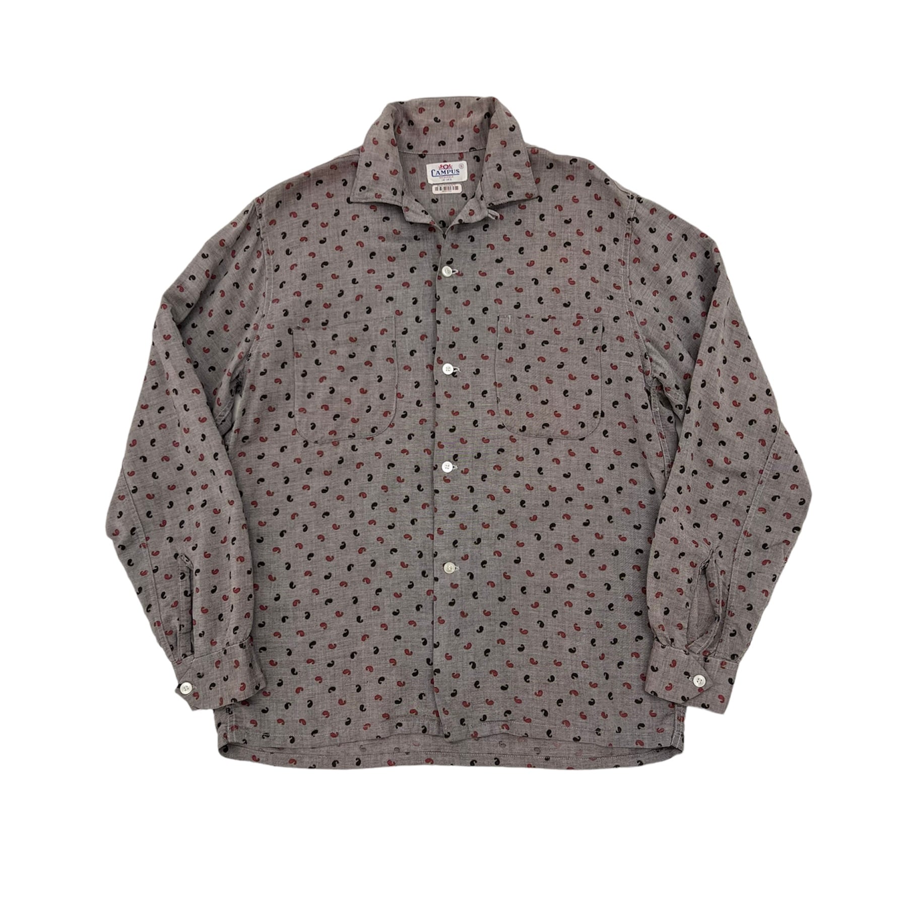 1003. 1950's campus rayon shirt チャコールグレー ×ブラック × レッド ペイズリー柄 長袖 ボックスシャツ オープンカラー 開襟 キャンパス 50s 50年代 vintage ビンテージ US古着