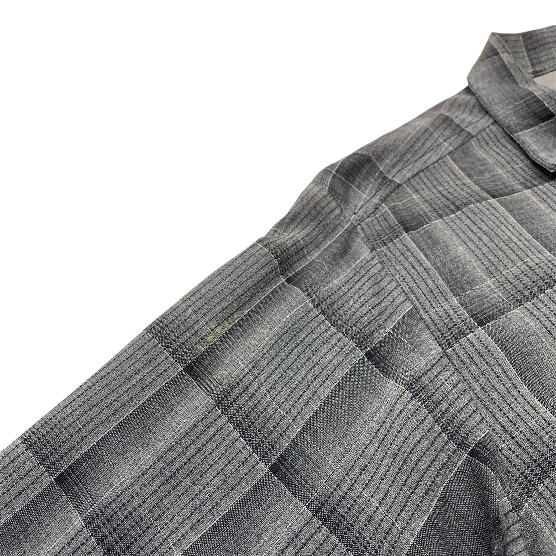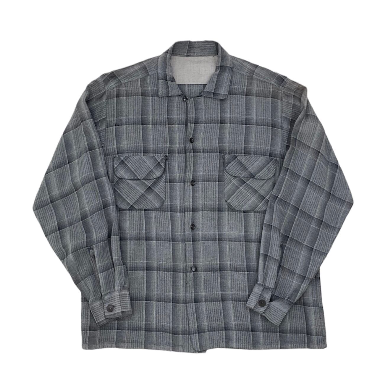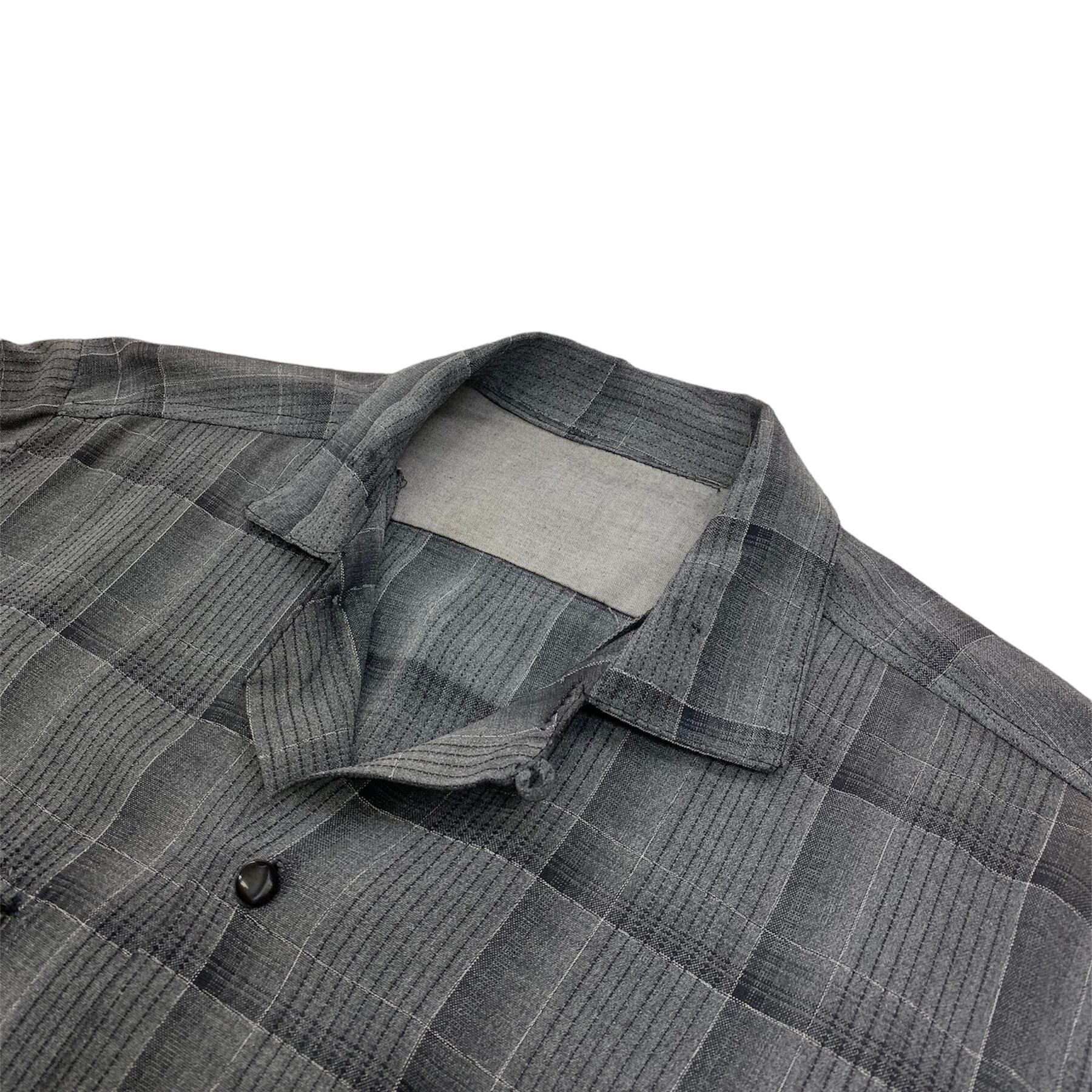 1005. 1950's plaid rayon shirt チャコールグレー ×ブラック 織り柄 オンブレチェック シャドーチェック 長袖 ボックスシャツ オープンカラー 開襟 50s 50年代 vintage ビンテージ US古着