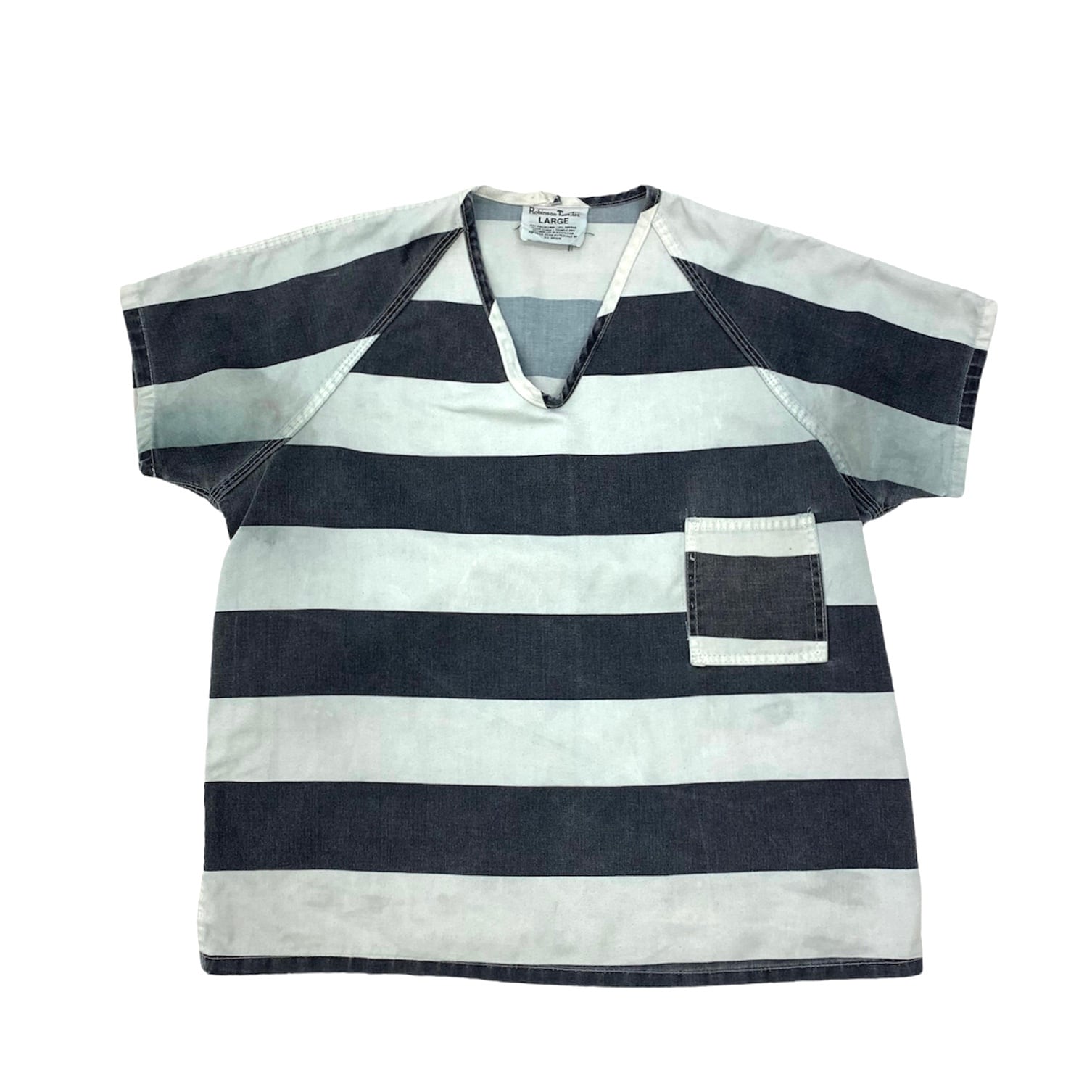 1008. 1980's Robinson Textiles prisoner shirt ボーダー ブラック 半袖 プルオーバー プリズナーシャツ 囚人 80s 80年代 vintage ビンテージ US古着