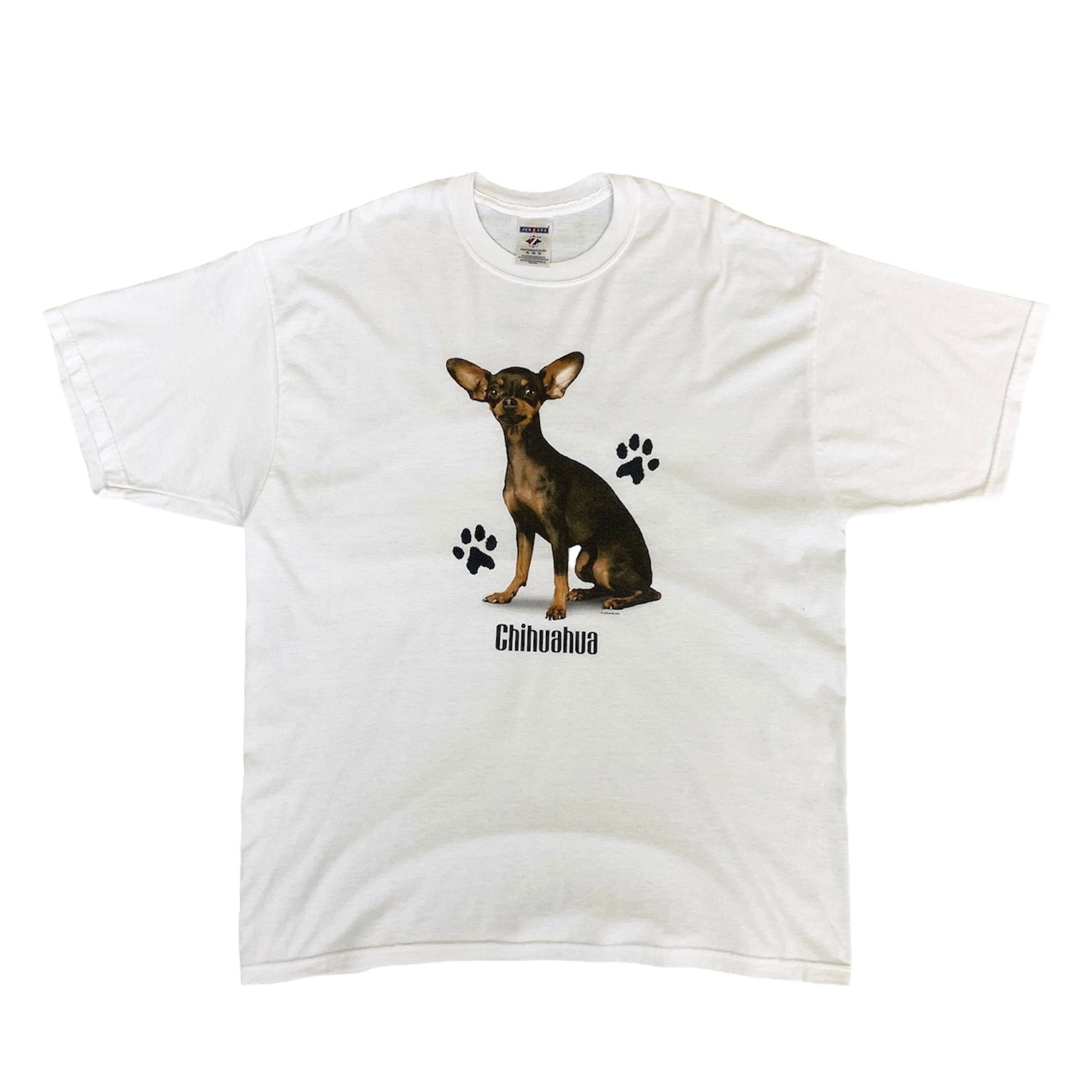 1028. 2000's Chihuahua tee ホワイト プリント チワワ 犬 Tシャツ 半袖 XL 00s 00年代 古着