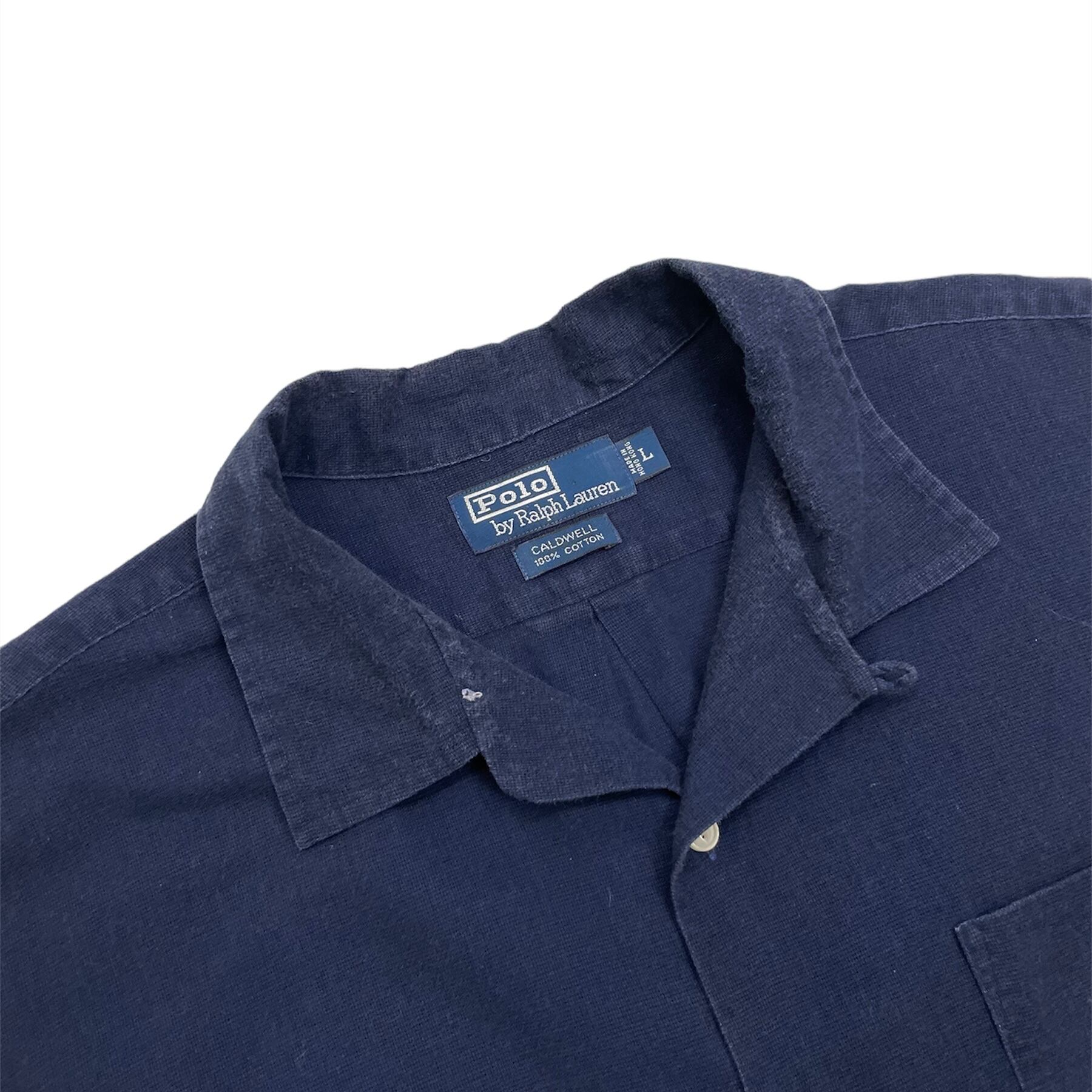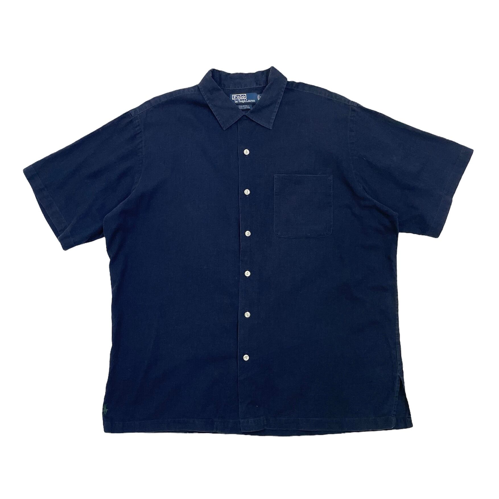 1033. 1990's Polo by Ralph Lauren cotton shirt “CALDWELL” ネイビー 半袖 ボックスシャツ オープンカラー 開襟 表記L 90s 90年代 vintage ビンテージ ポロバイラルフローレン US古着