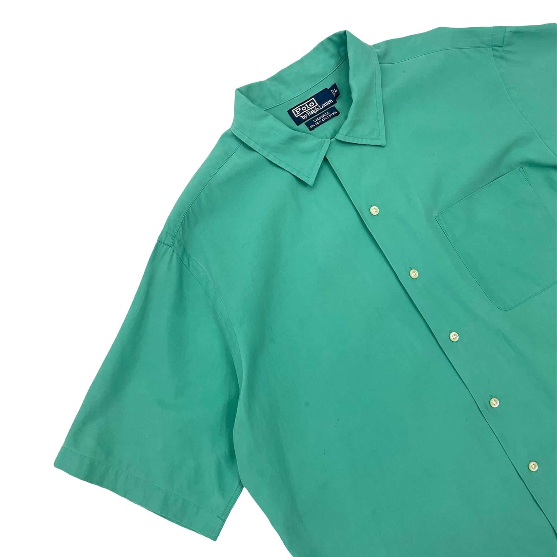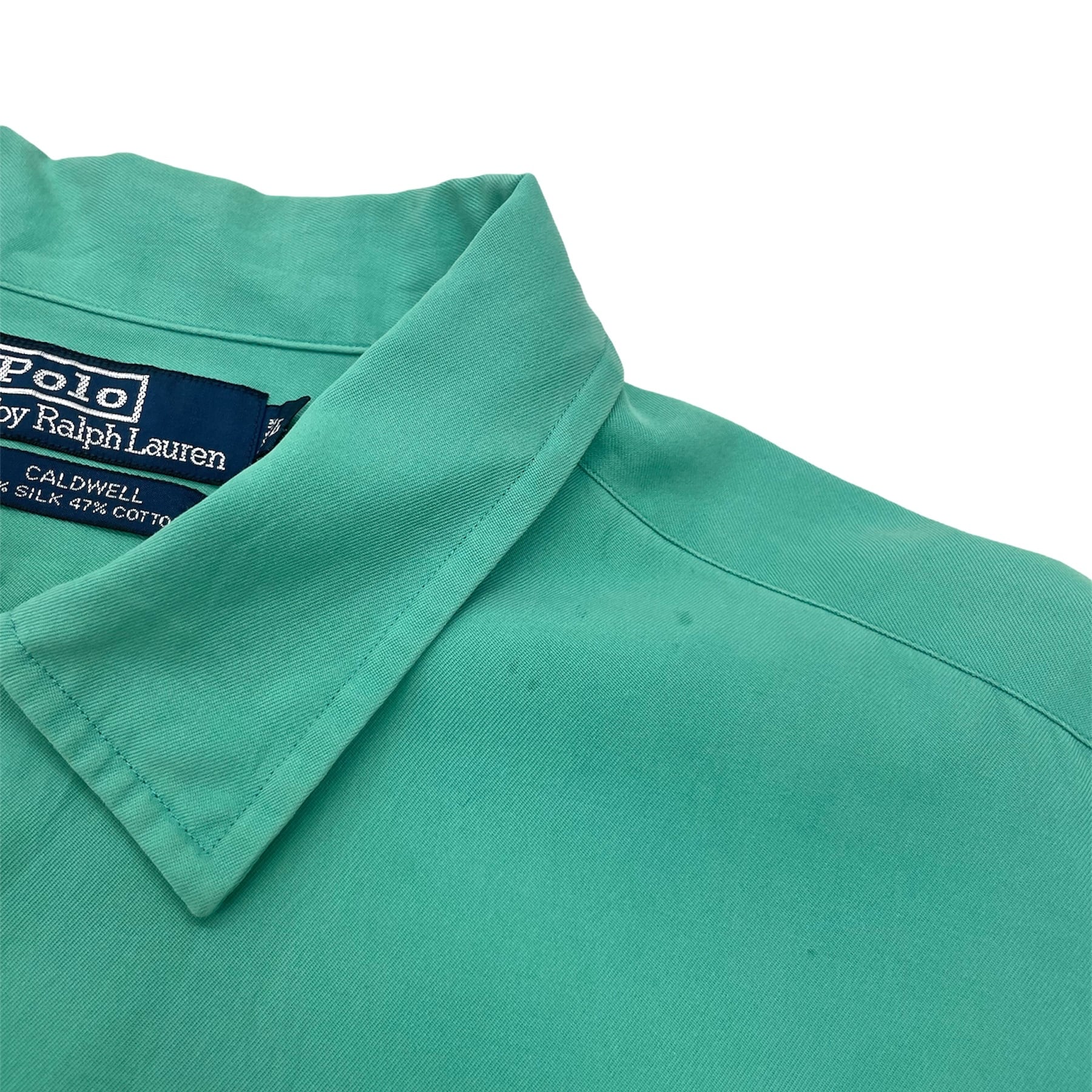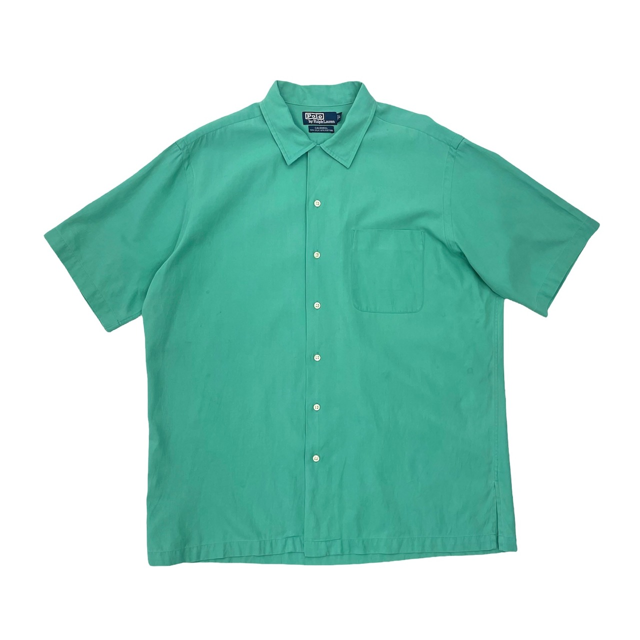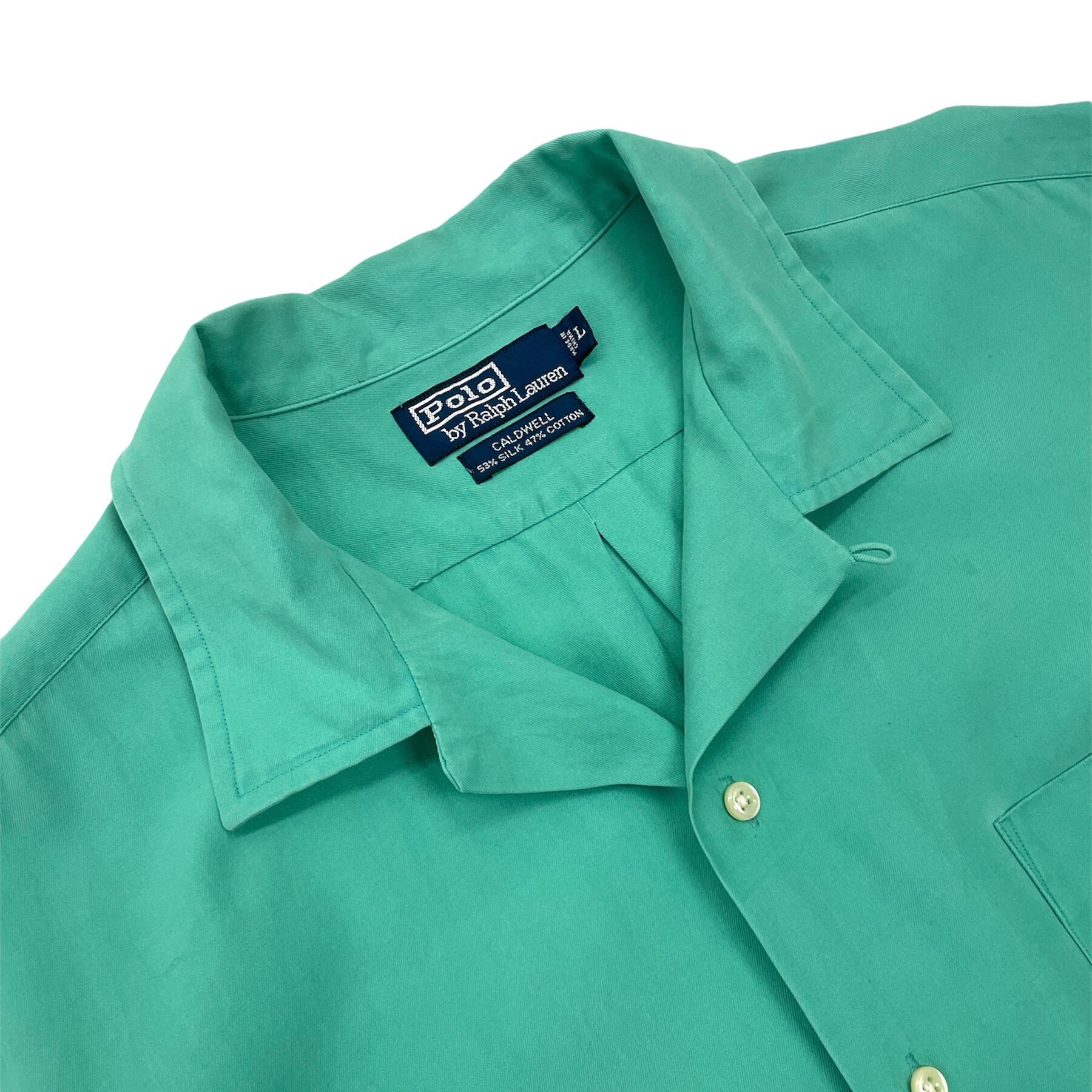 1036. 1990's Polo by Ralph Lauren “CALDWELL” silk/cotton shirt グリーン 半袖 ボックスシャツ オープンカラー シルク/コットン 開襟 表記L 90s 90年代 vintage ビンテージ ポロバイラルフローレン US古着