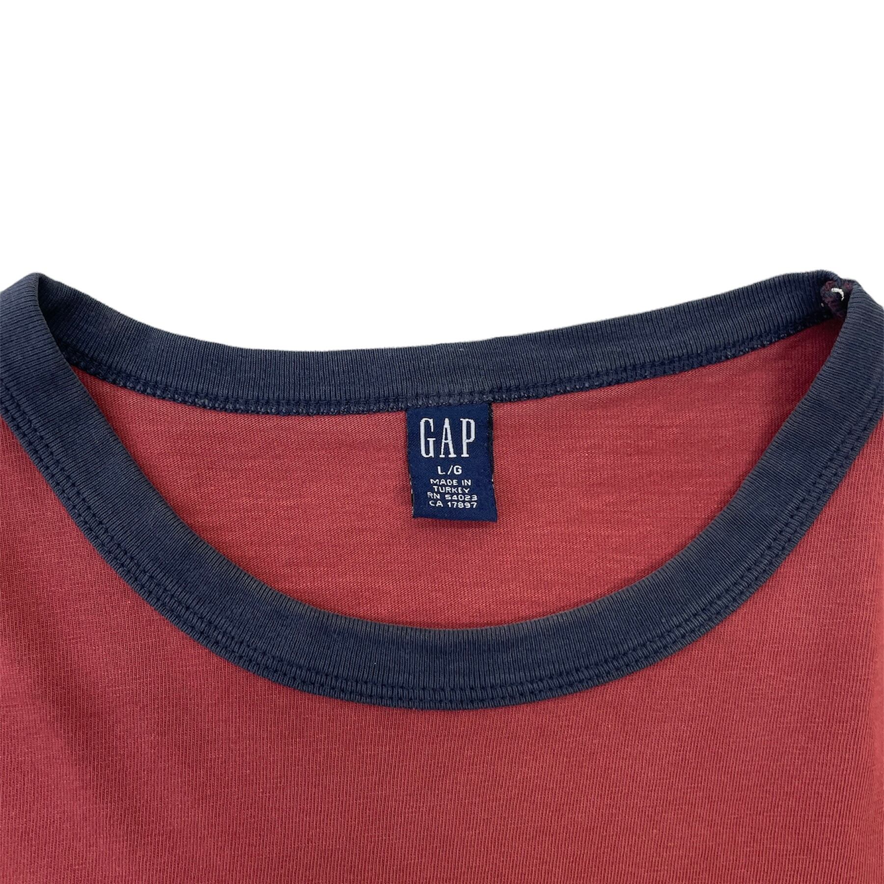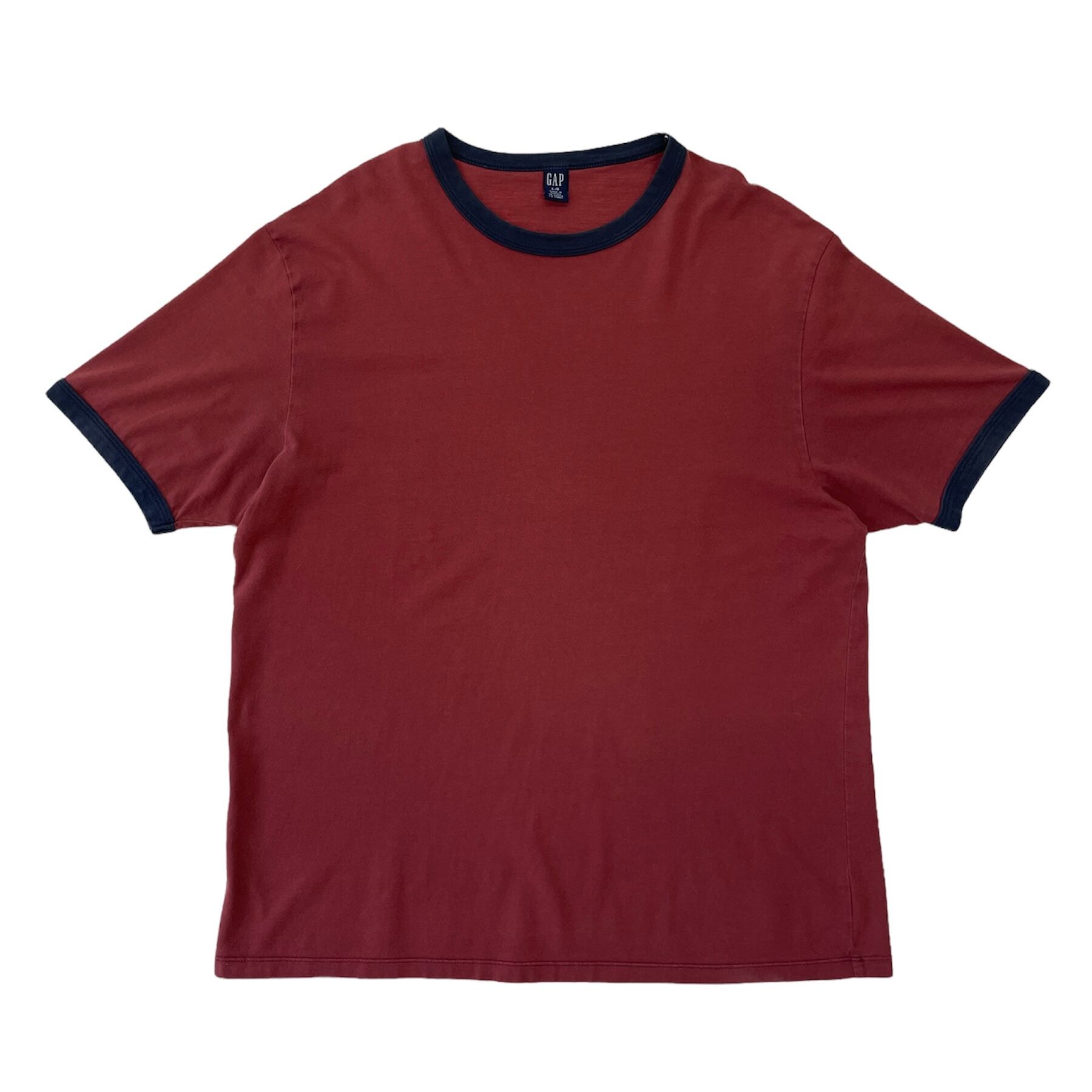 1040. 2000's GAP ringer tee レッド×ネイビー Tシャツ 半袖 無地 2トーン 表記L 00s 00年代 ギャップ トリムT バインダーネック 古着