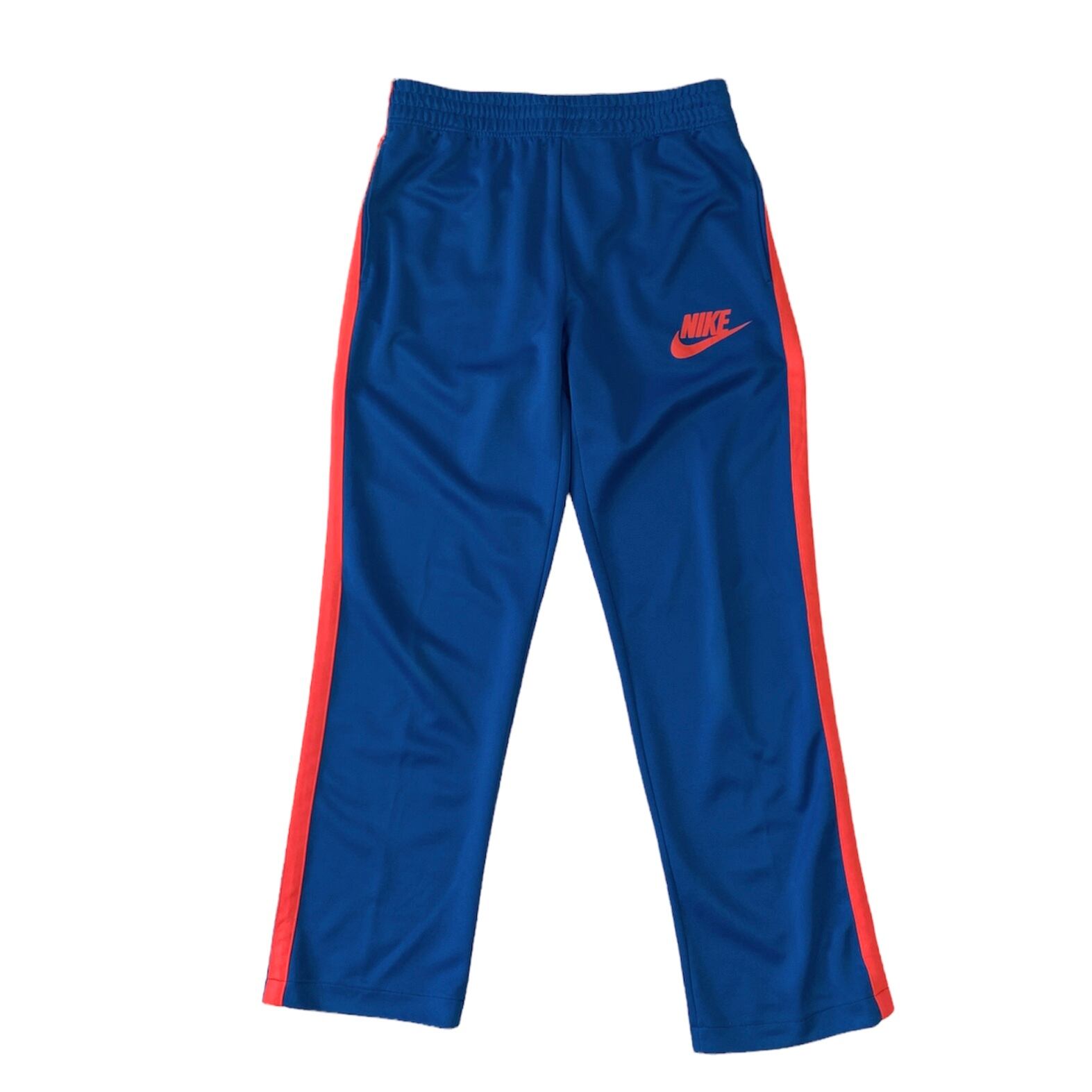 1044. NIKE side-lined jersey ブルー×レッド ジャージー イージーパンツ トラックパンツ サイドライン 側章 ナイキ スウォッシュ 古着