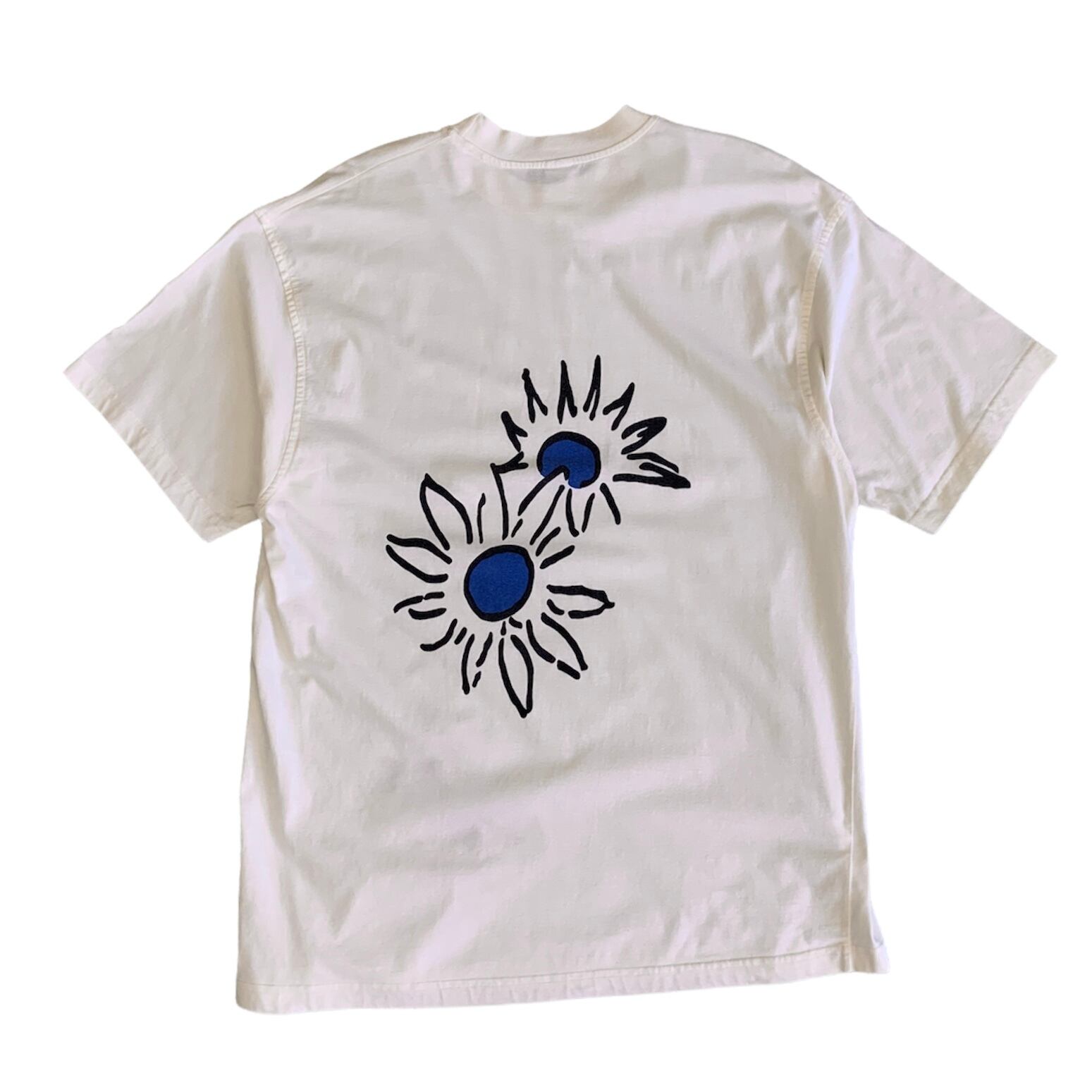 1047. 1990's sunflower? tee ホワイト お花 ヒマワリ フラワー 両面プリント Tシャツ 半袖 表記L 90s 90年代 ユーロビンテージ 古着