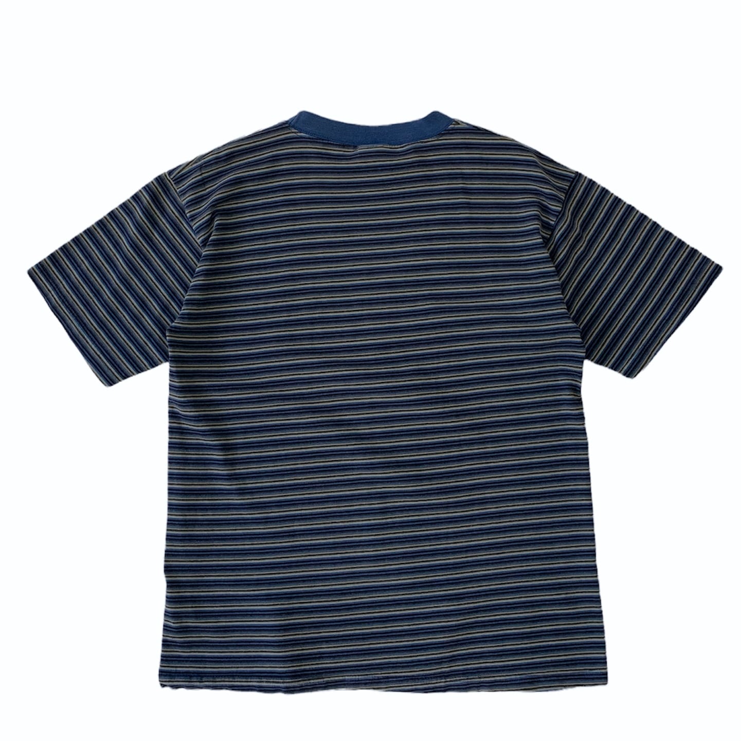 1049. 1990's HANGTEN jacquard striped tee ブルー系 マルチボーダー 織り柄 ジャカード Tシャツ 半袖 表記M USA製 アメリカ製 90s 90年代 ビンテージハンテン サーフT 古着