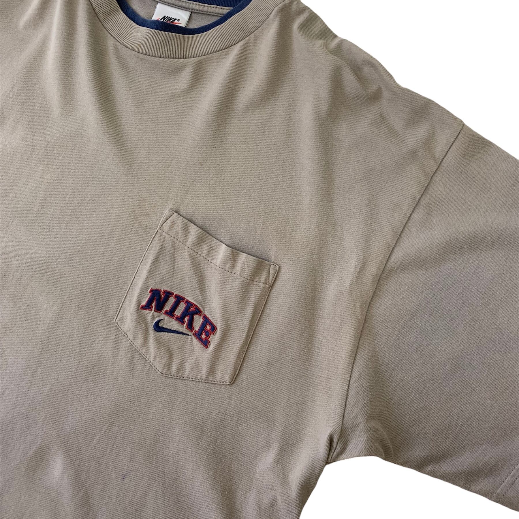 1052. 1990's Hungary made NIKE pocket tee ガンスモーク ポケットTシャツ ロゴ刺繍 半袖 表記L 90s 90年代 euro vintage ユーロビンテージ ナイキ 古着