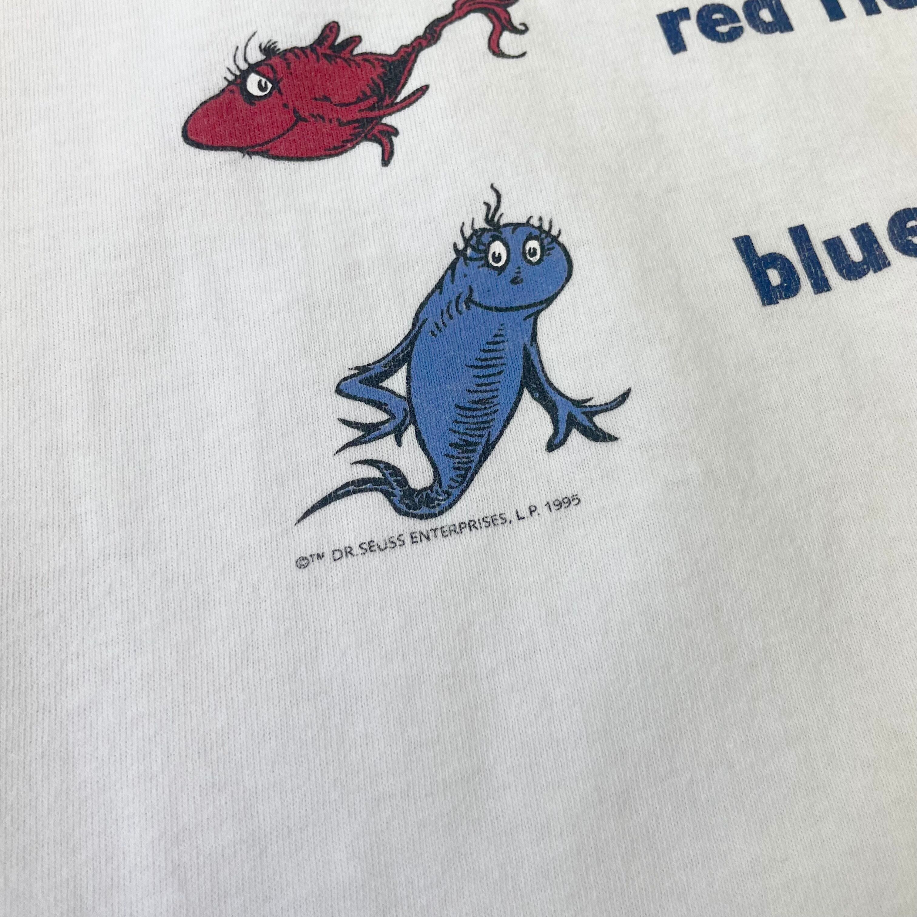 1056. 1990's “One fish, two fish, red fish, blue fish” by Dr. Seuss tee ホワイト 魚 プリント Tシャツ 半袖 実寸L程 90s 90年代 vintage ビンテージ ドクタースース 古着