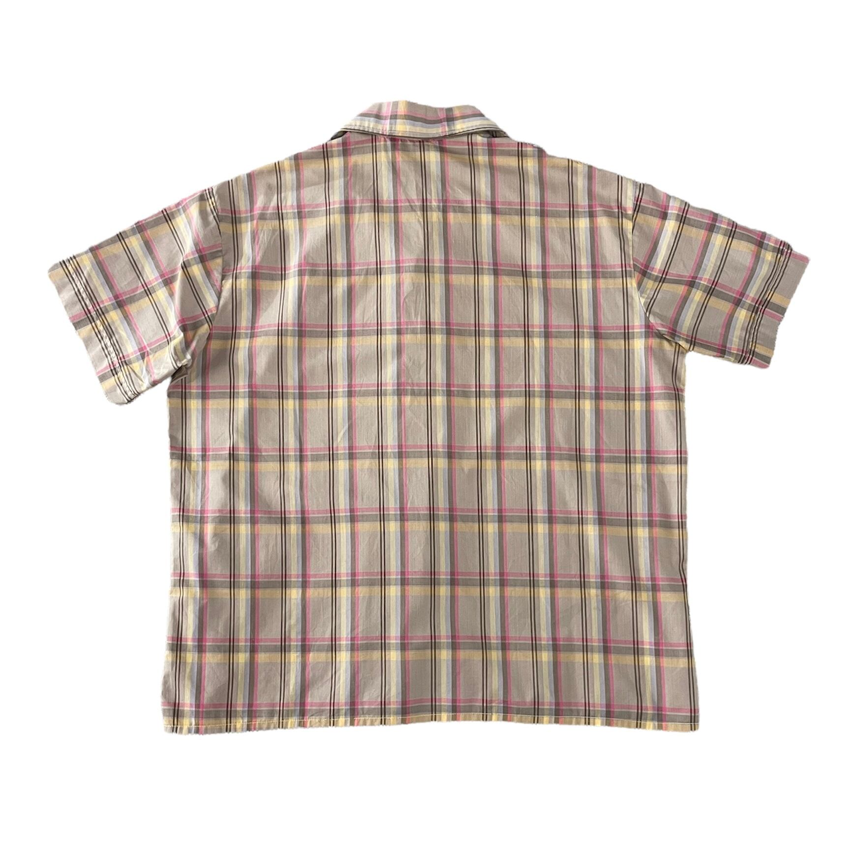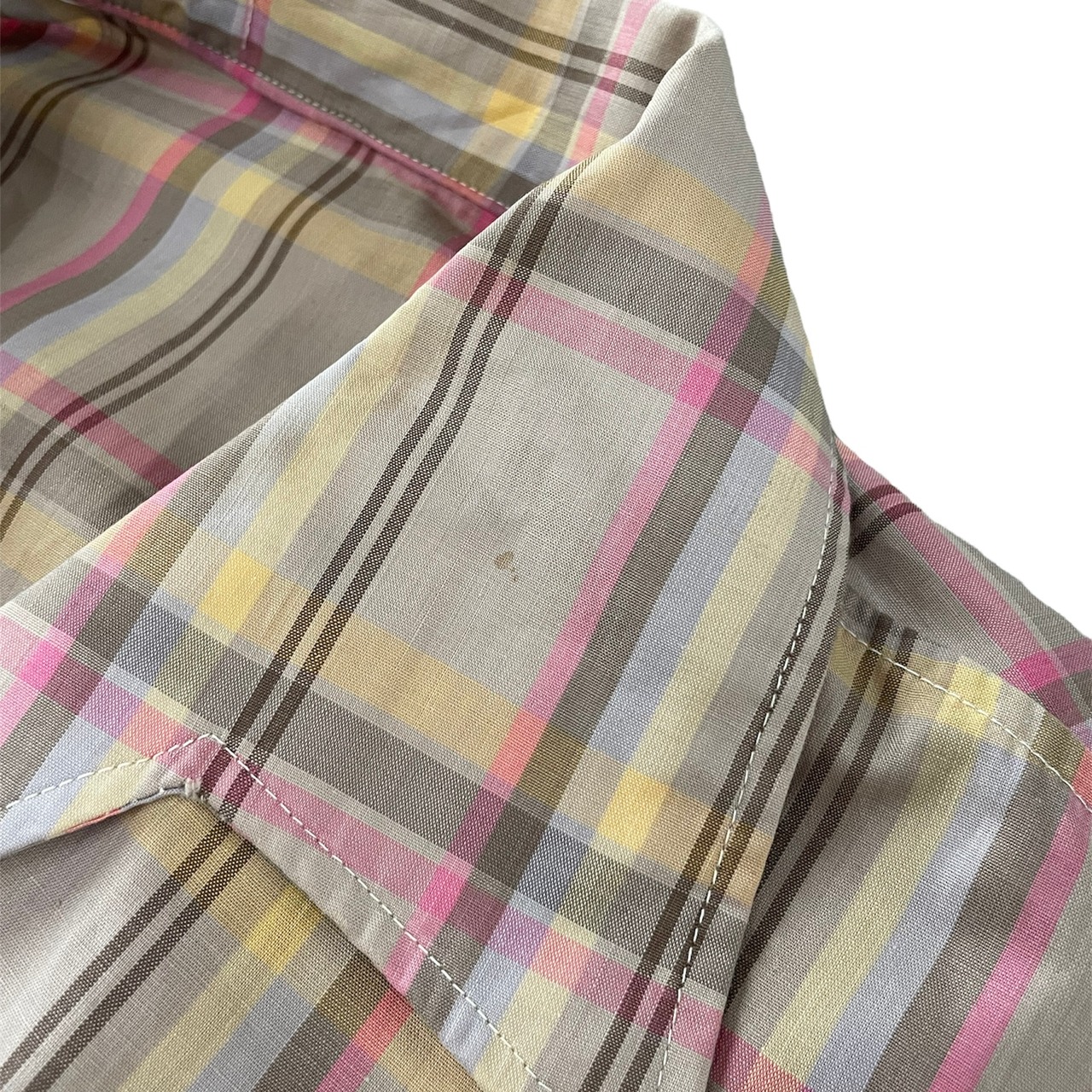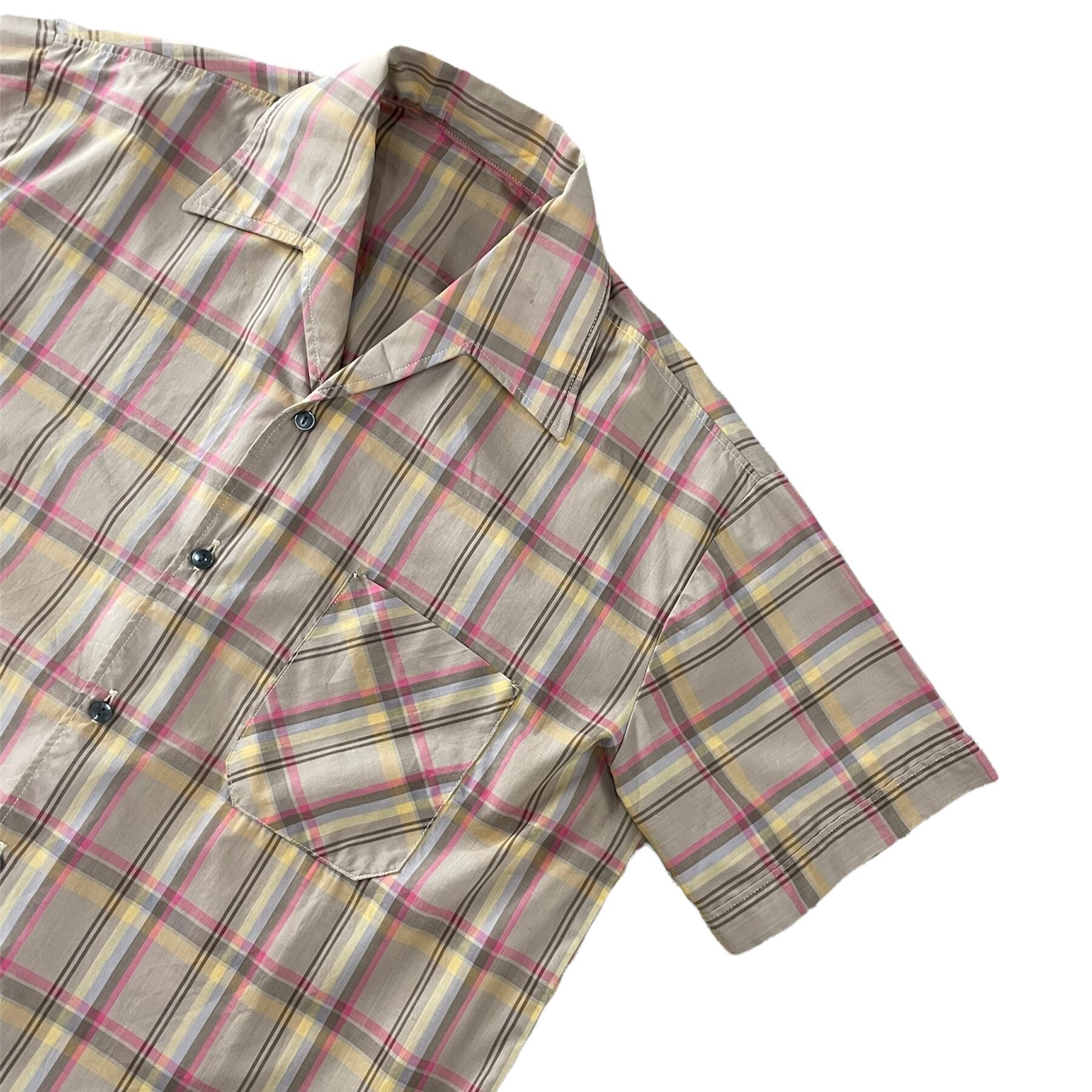 1064. 1970's plaid leisure shirt チェック 半袖 ボックスシャツ 開襟 オープンカラー シャークカラー 実寸L程 70s 70年代 euro vintage ビンテージ ユーロ古着