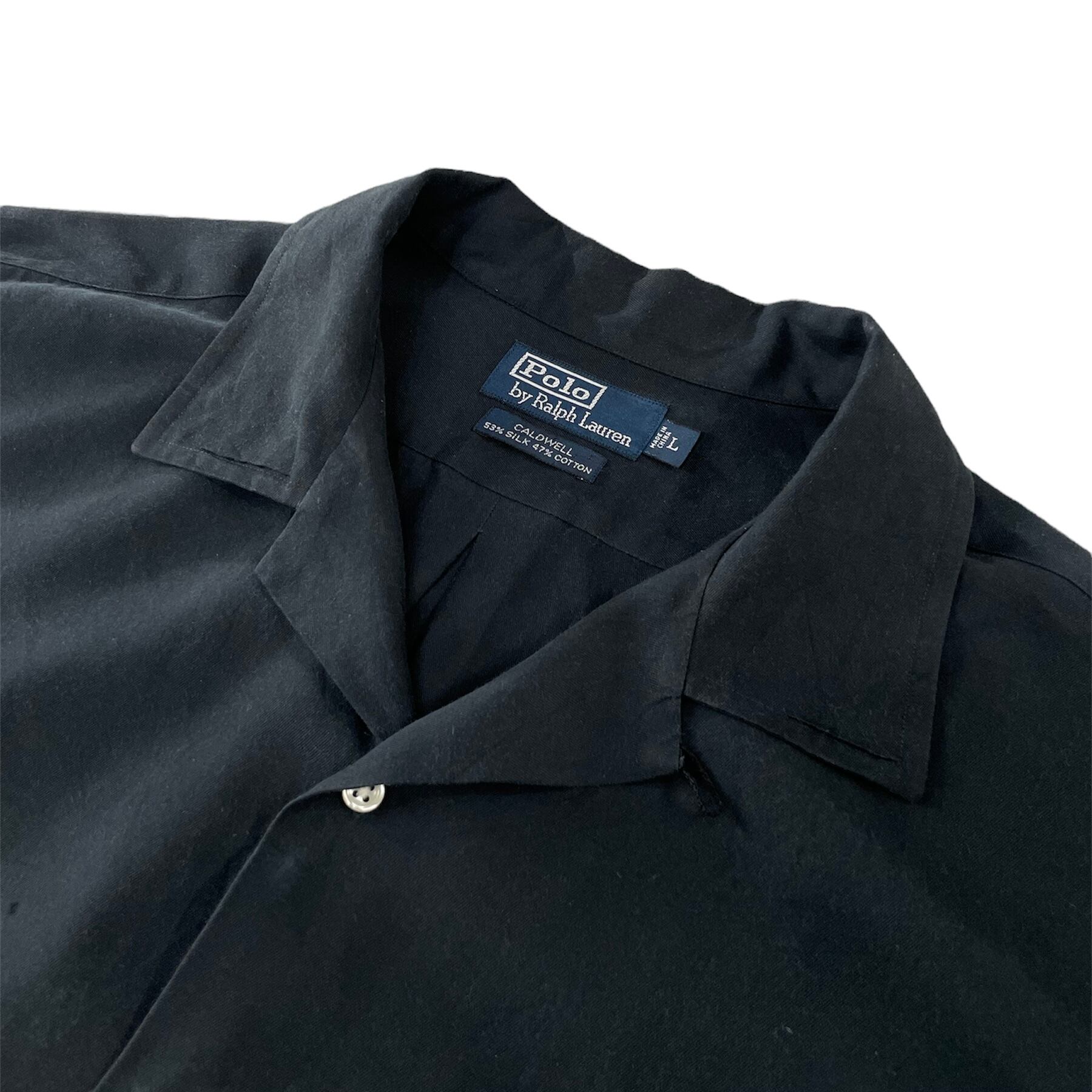 1065. 1990's Polo by Ralph Lauren “CALDWELL” silk/cotton shirt ブラック 半袖 ボックスシャツ オープンカラー シルク/コットン 開襟 表記L 90s 90年代 vintage ビンテージ ポロバイラルフローレン US古着