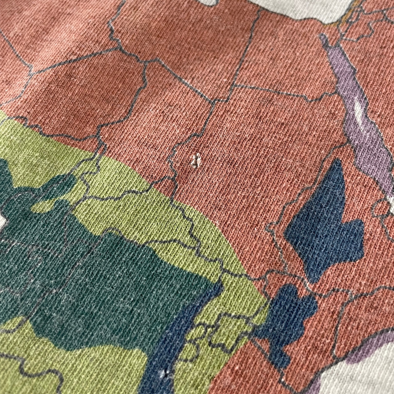 1076. 1990's “BIOMES” world map tee 杢グレー 両面 アートプリント Tシャツ マルチカラー 半袖 表記L 90s 90年代 vintage hanes 世界地図 地球 古着