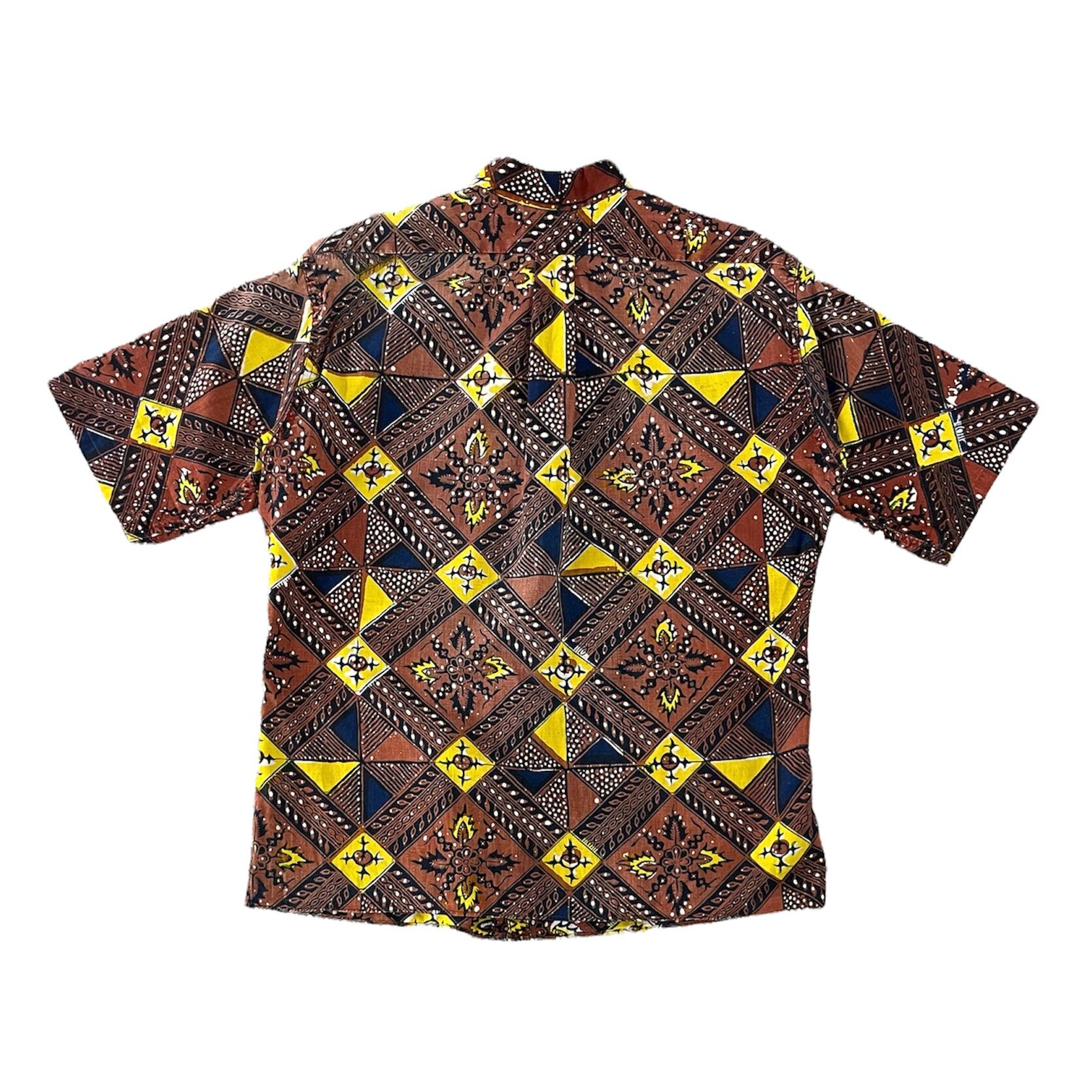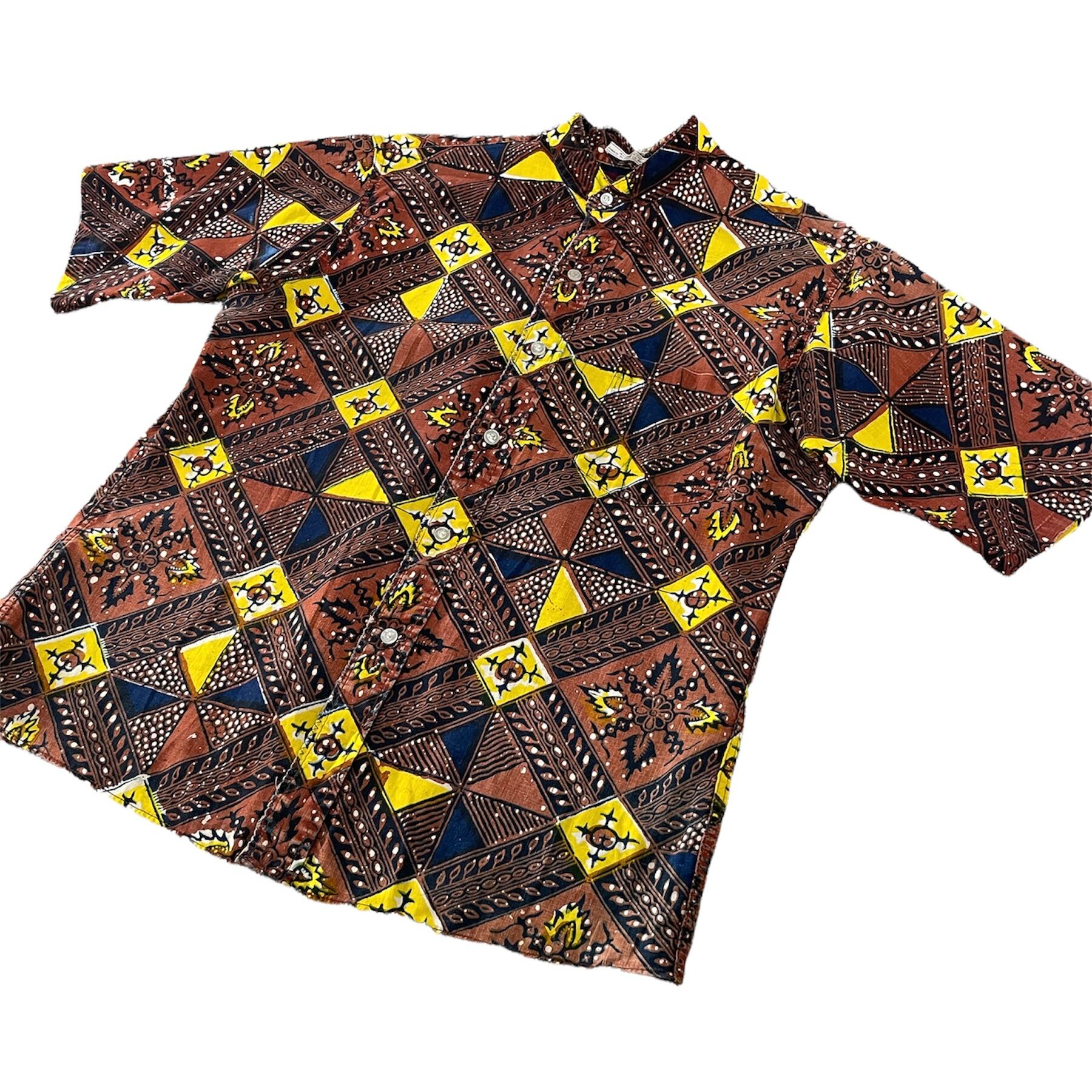 1078. ~1970's VAN HEUSEN “HAND BLOCKED PRINTS” 総柄 ハンドブロックプリント バンドカラー レジャーシャツ 半袖 表記M 70s 70年代 vintage ビンテージ インド綿 バティック バンヒューセン 古着