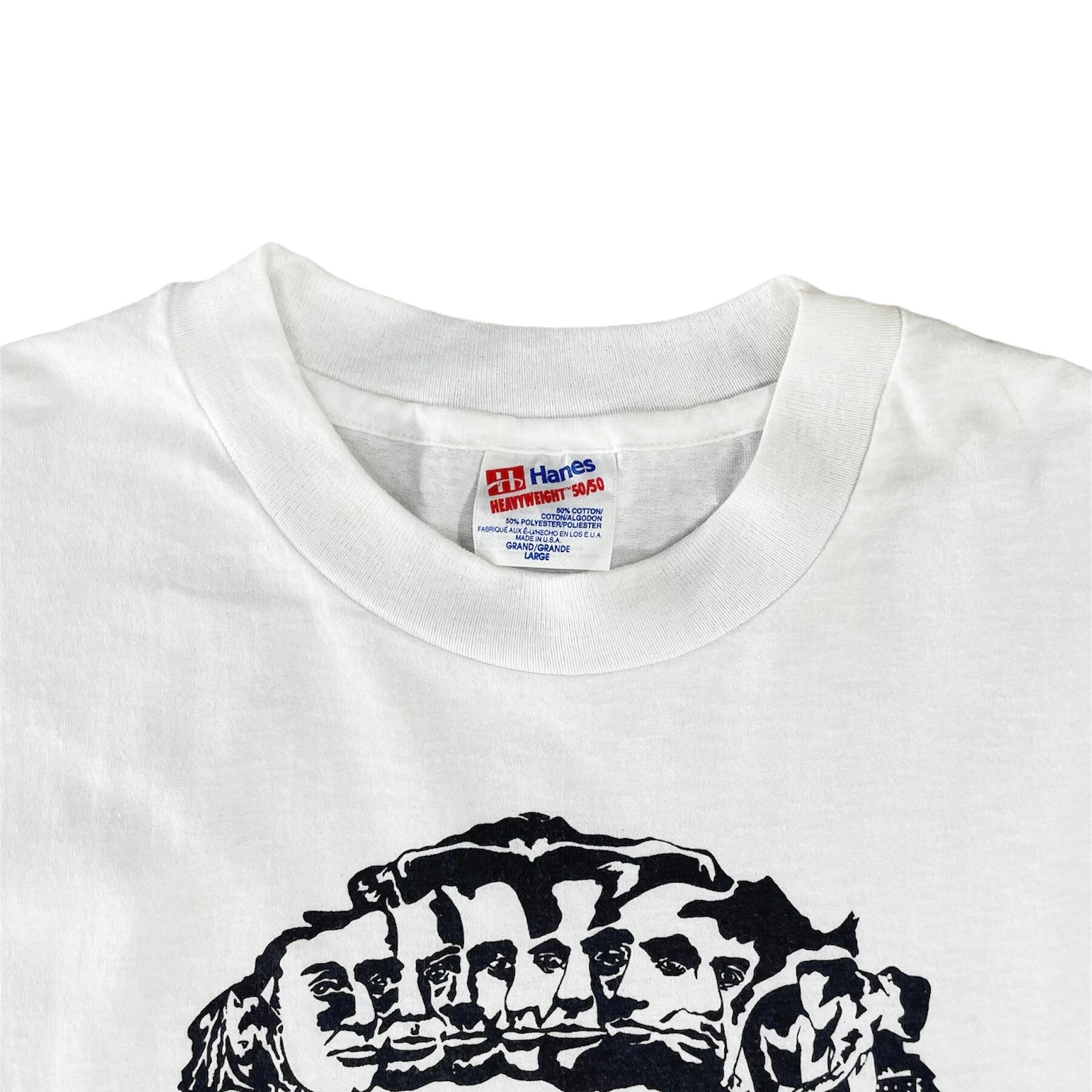 1077. 1990's “History of Abraham Lincoln” art printed ホワイト エイブラハム・リンカーン アートプリント Tシャツ だまし絵 半袖 表記L USA製 アメリカ製 90s 90年代 vintage Hanes HEAVYWEIGHT 50/50 ビンテージヘインズ 古着