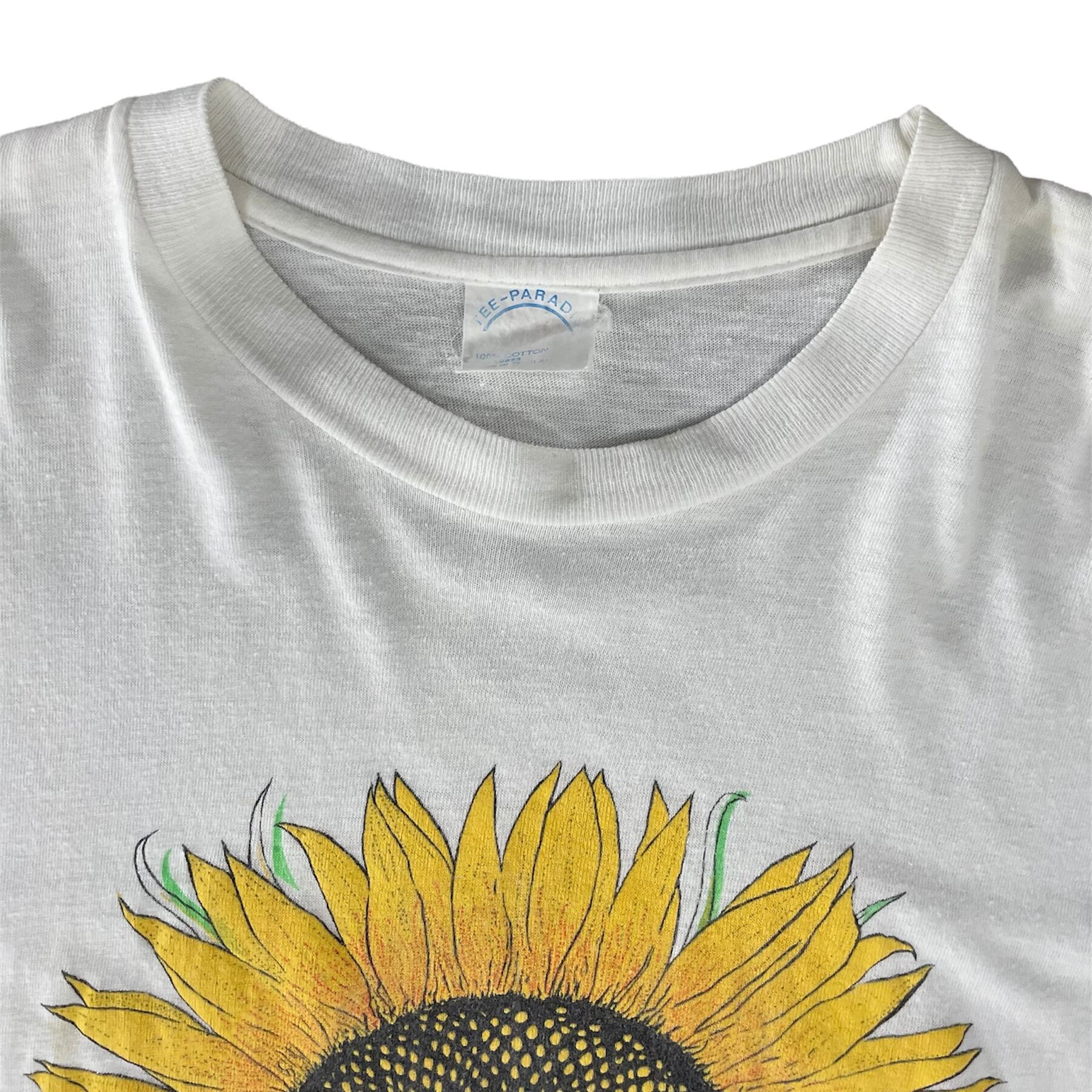 1081. 1980's sunflower tee ホワイト 花 プリント Tシャツ 半袖 実寸L程 80s 80年代 vintage ビンテージ 向日葵 ヒマワリ 古着