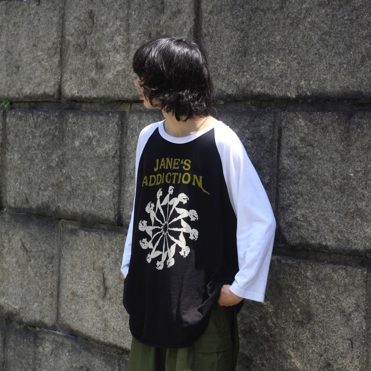 1086. Jane's Addiction “Lady Wheel” tee ブラック×ホワイト ラグランスリーブ 2トーン Tシャツ 長袖 表記XXL バンT オルタナティブロック ロラパルーザ 古着