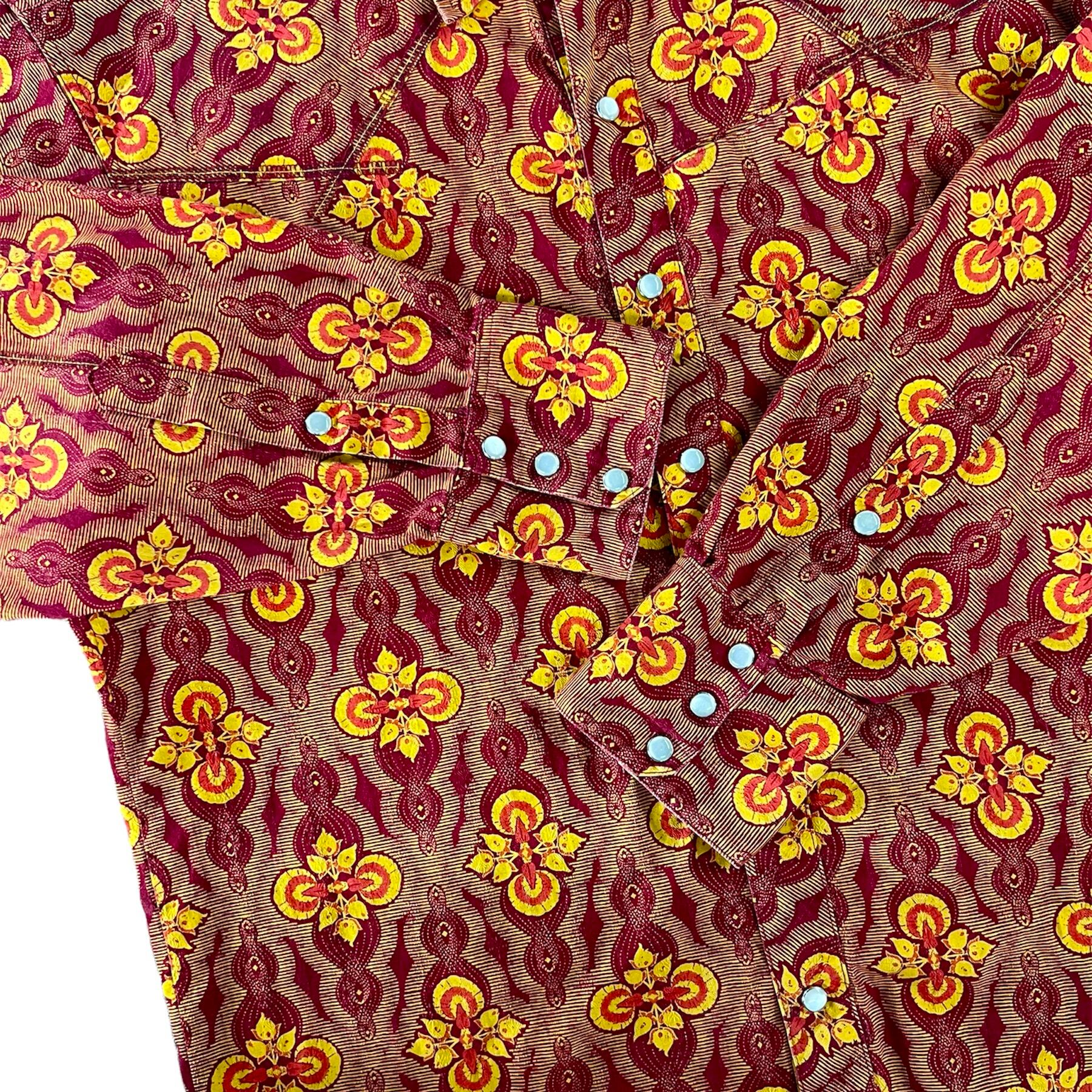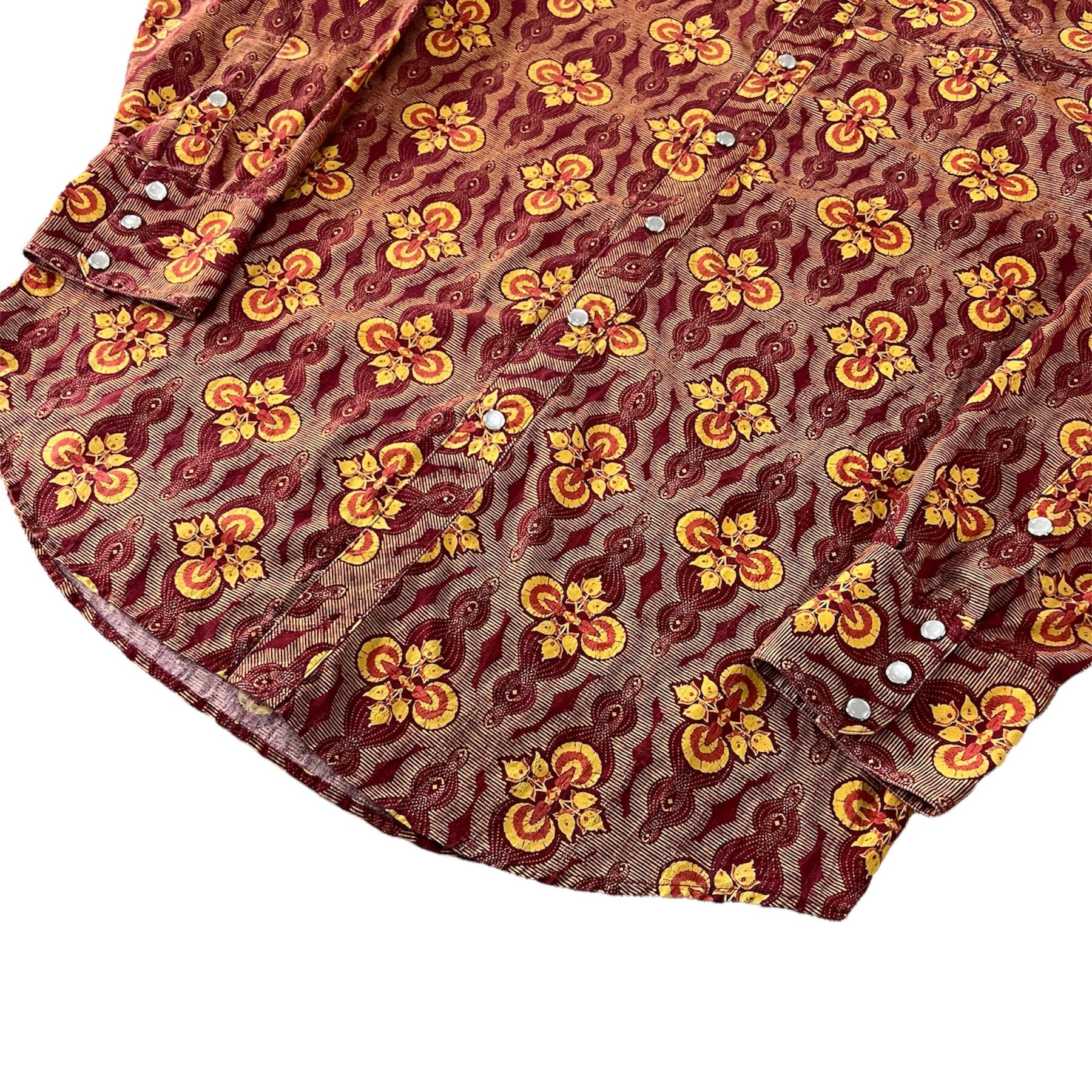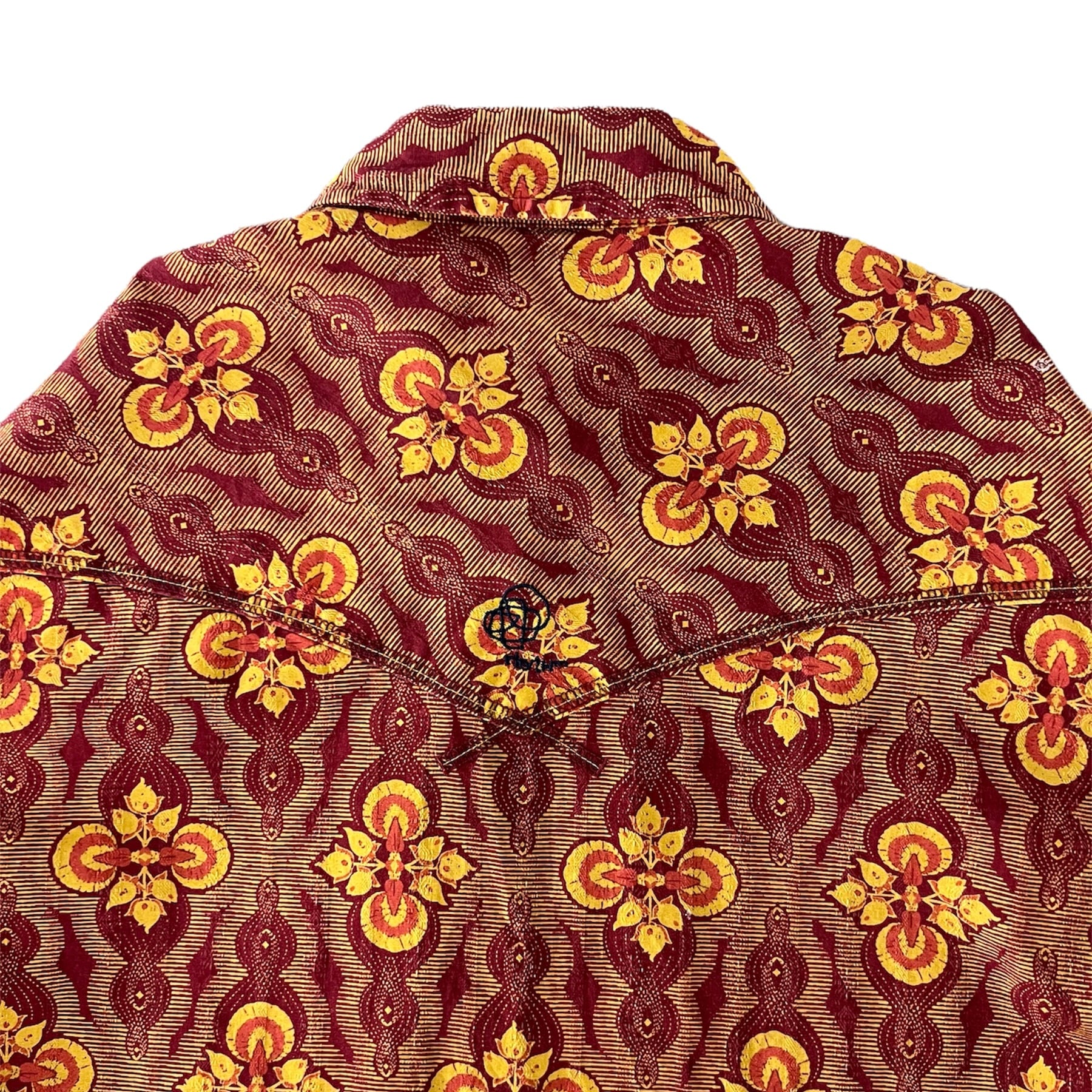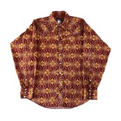 アフリカンバティックのような総柄のウエスタンシャツ。