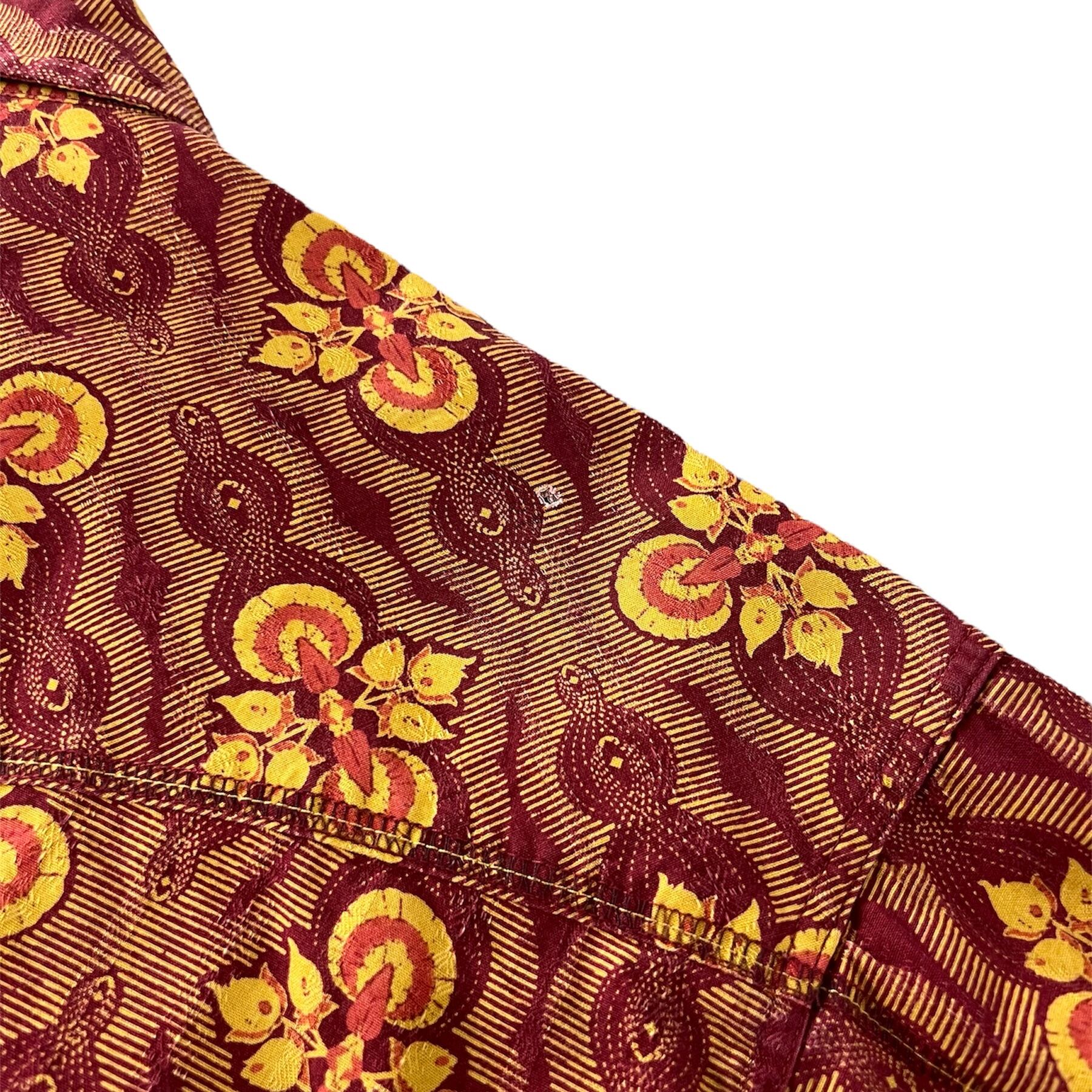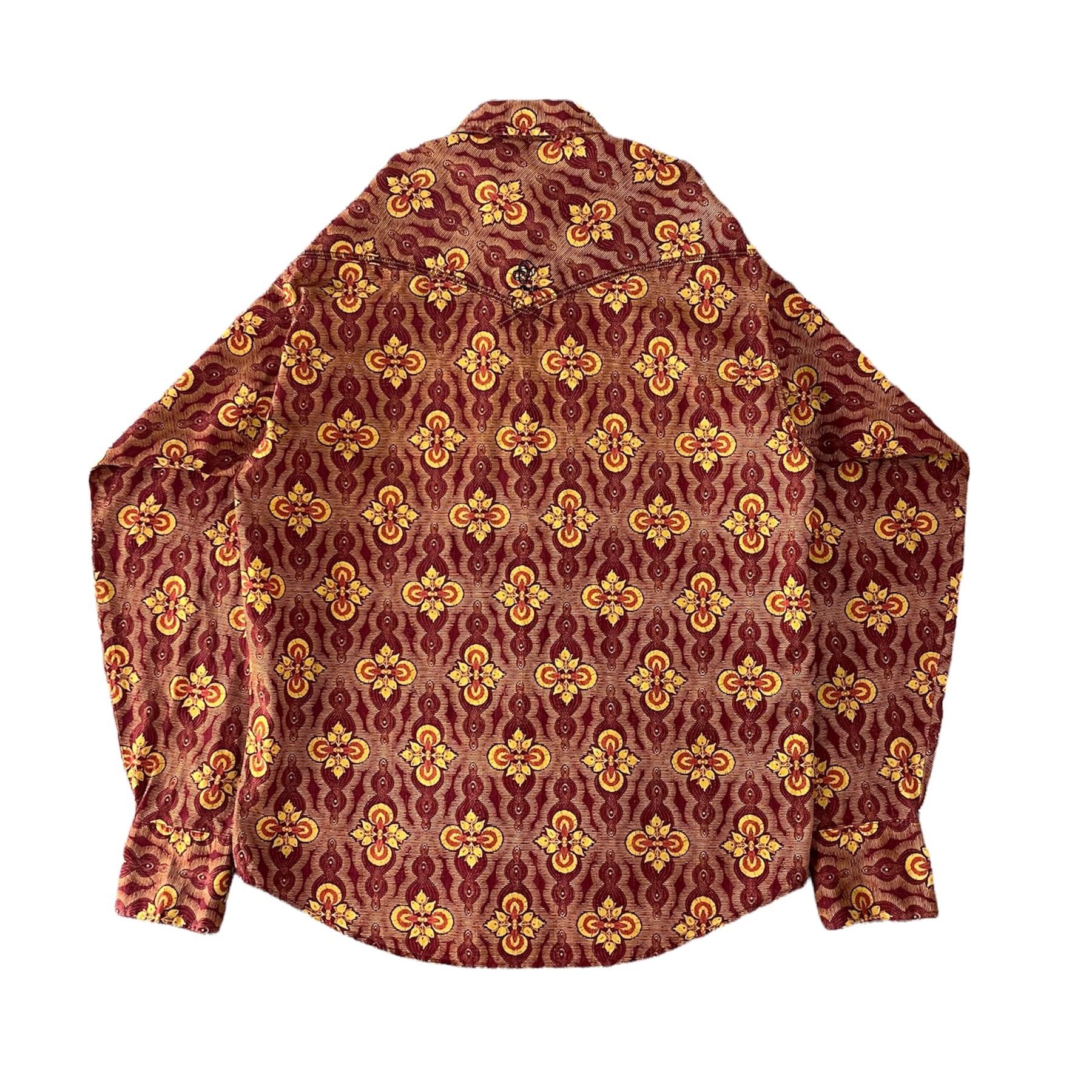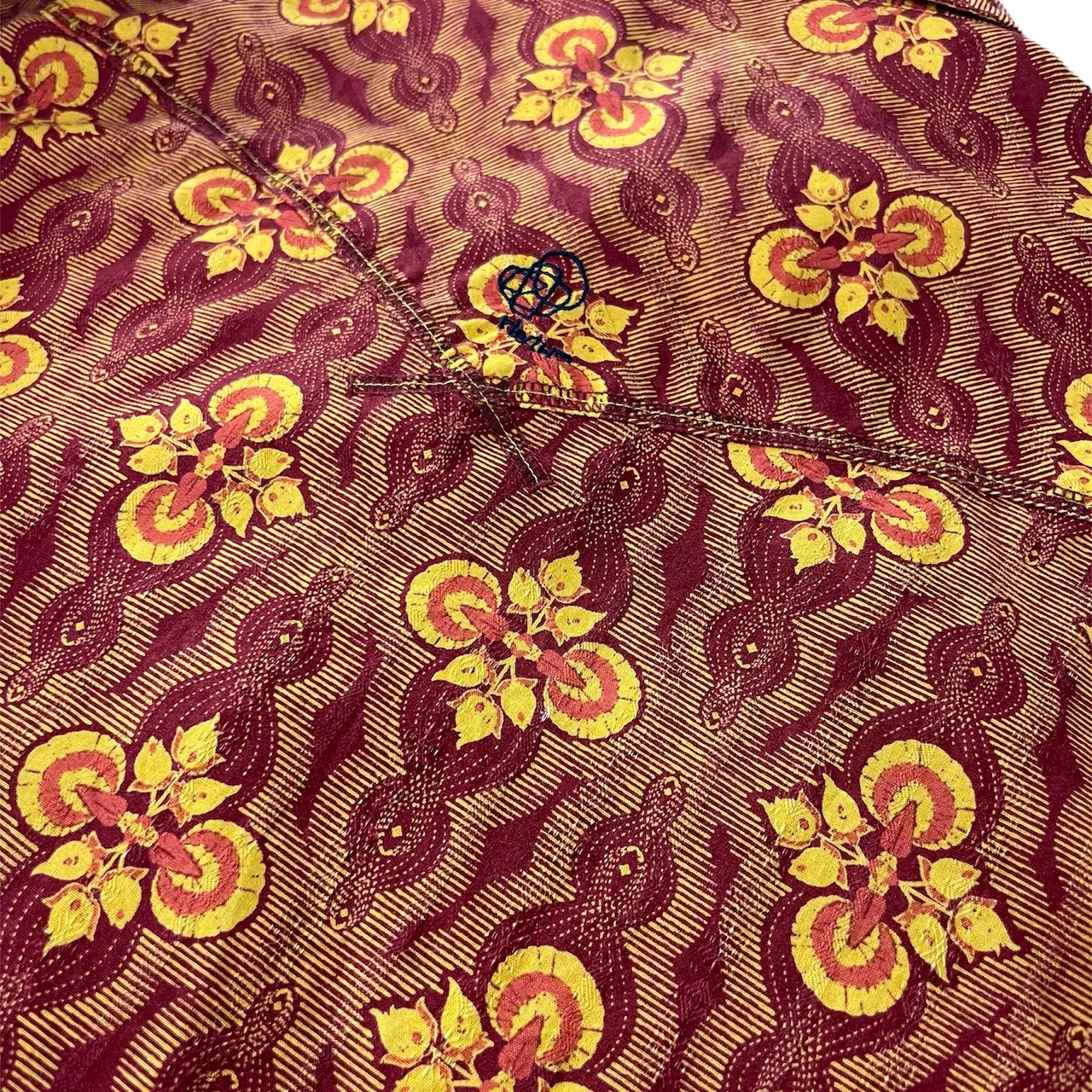 アフリカンバティックのような総柄のウエスタンシャツ。