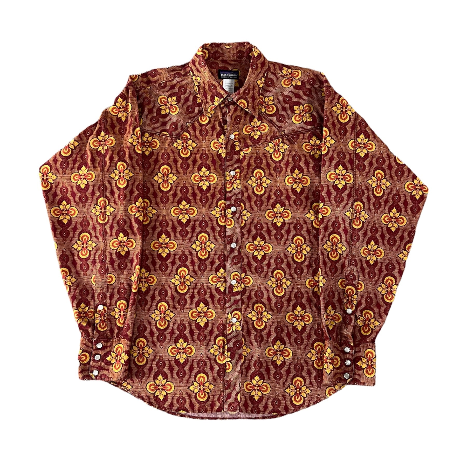 1094. 2000's Patagonia “rhythm” western shirt 総柄 バティック ウエスタンシャツ 長袖 表記M ビンテージパタゴニア リズム クライミング 00s 00年代 古着 2005年 20765FS