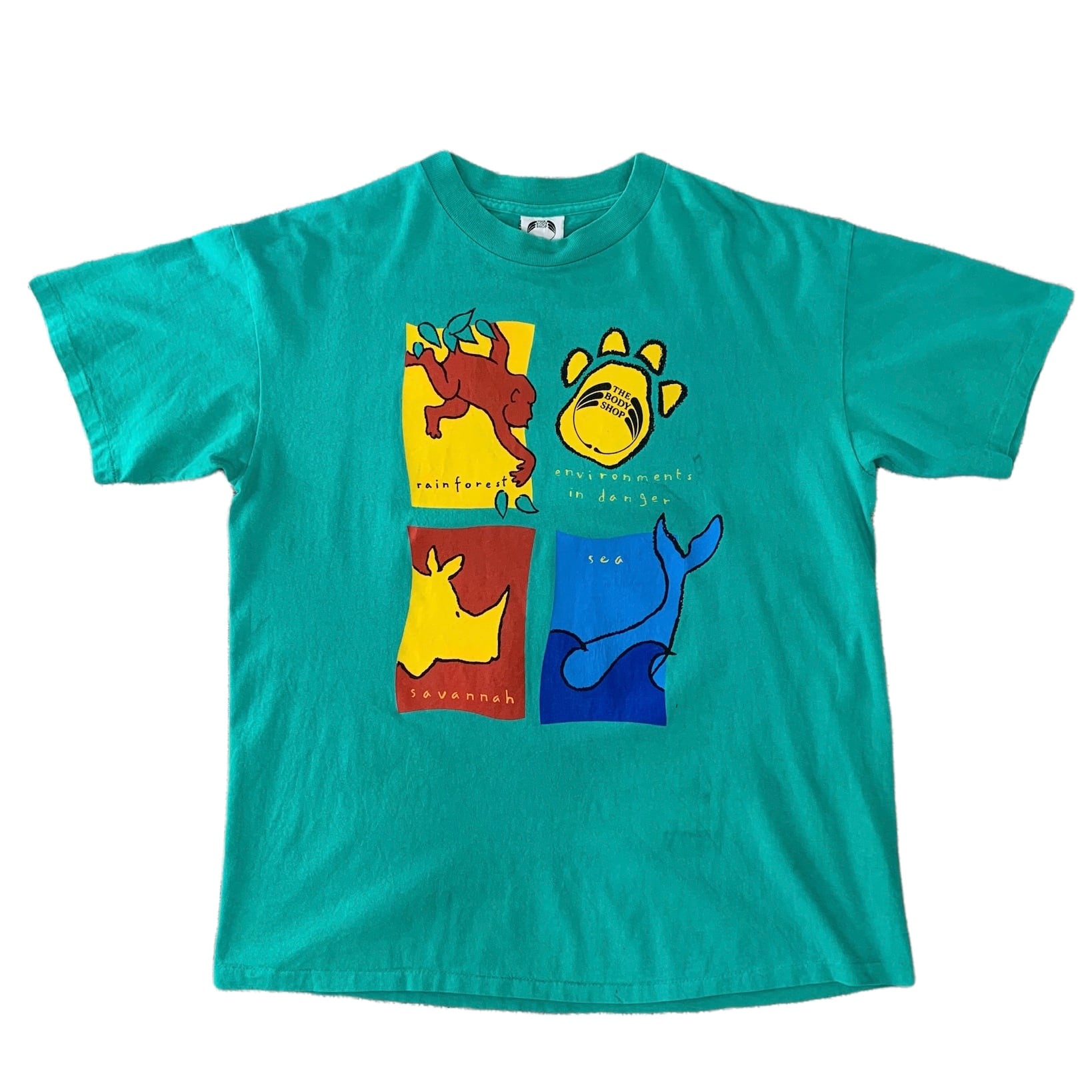90's ザ・ボディショップ プリントTシャツ グリーン 半袖 アニマル アート 90年代 アメリカ製