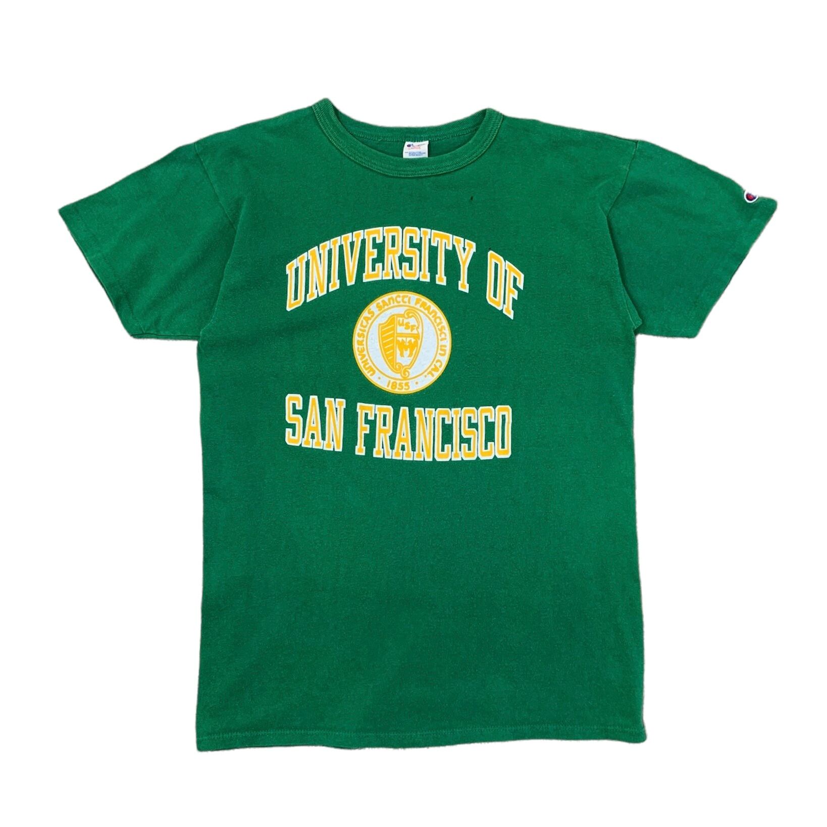 1177. 80's SF Univ. tee Tシャツ グリーン L 80年代 カレッジプリント Champion トリコタグ サンフランシスコ大学 アメリカ製