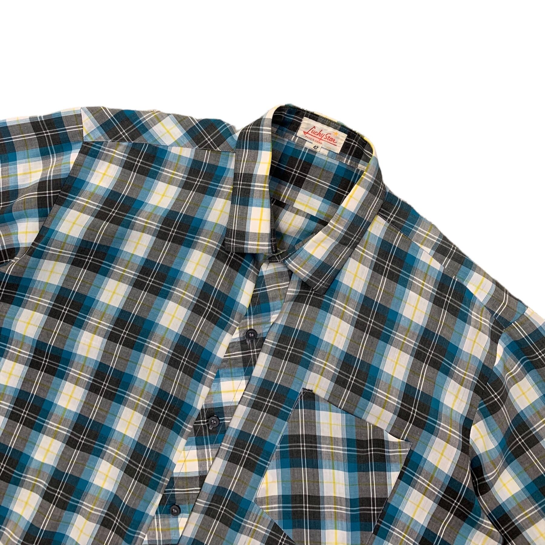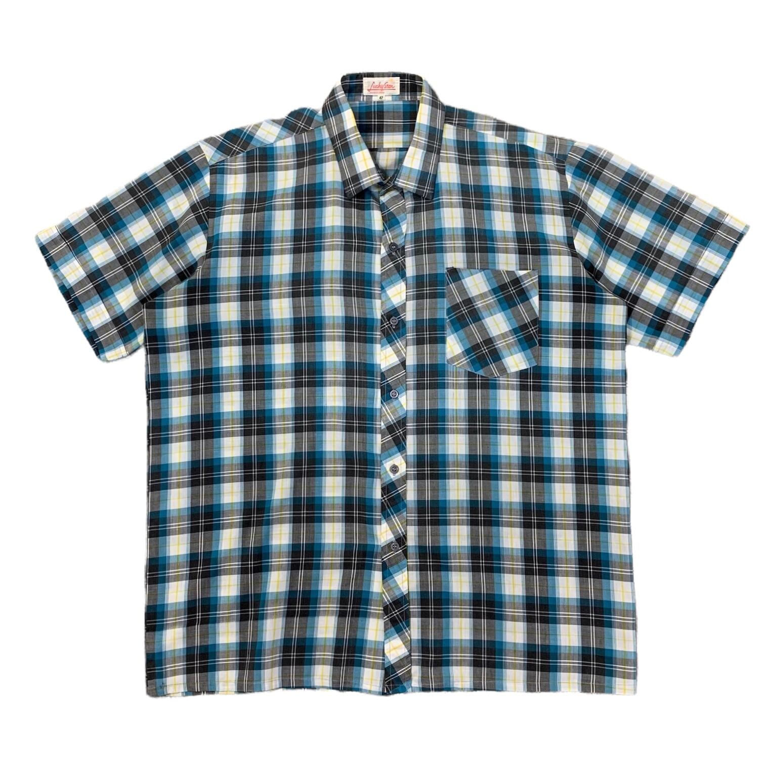 80's 半袖シャツ チェック ブルー 42 80年代 ユーロ古着