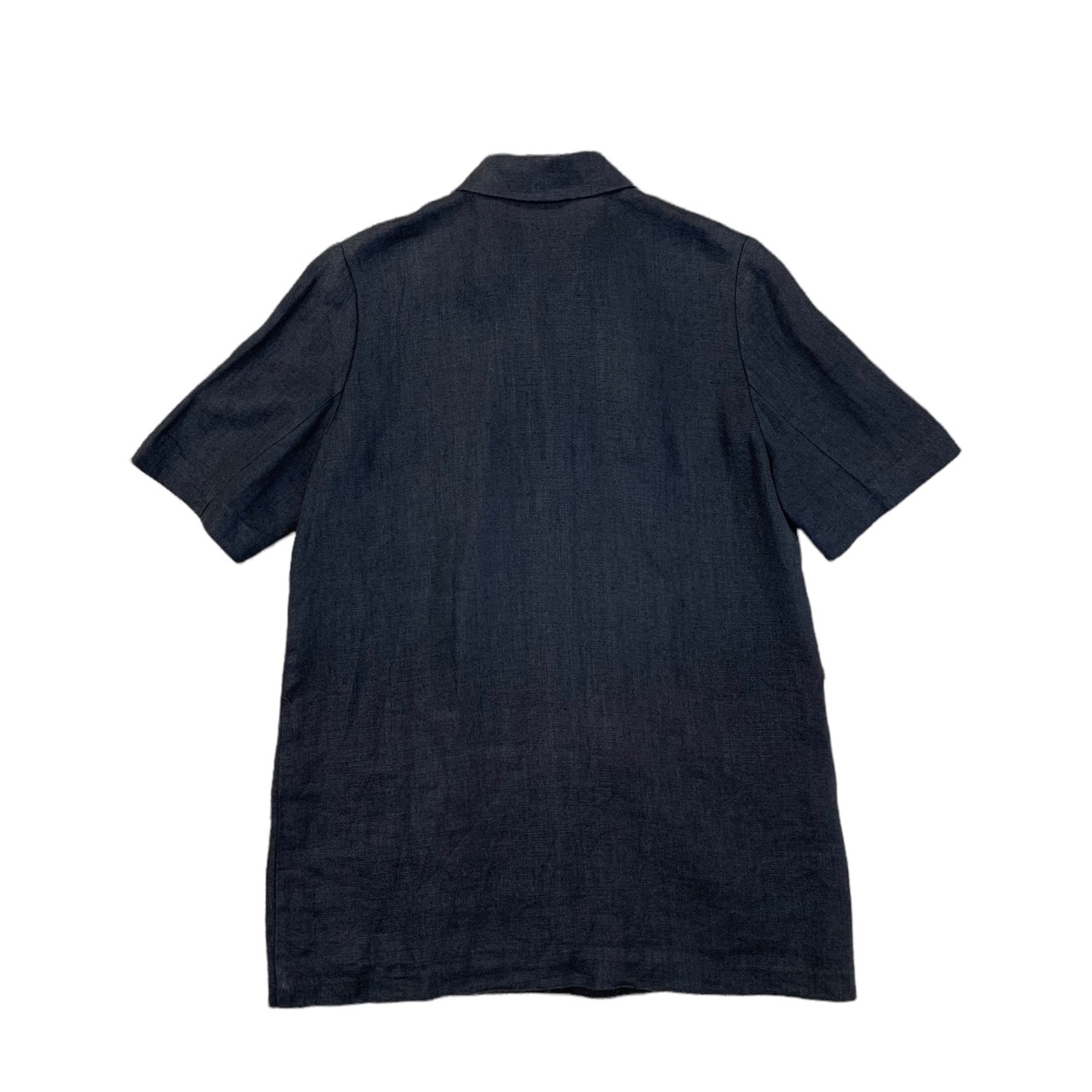 半袖 リネンシャツジャケット ブラック GB12 ユーロ古着 レディース