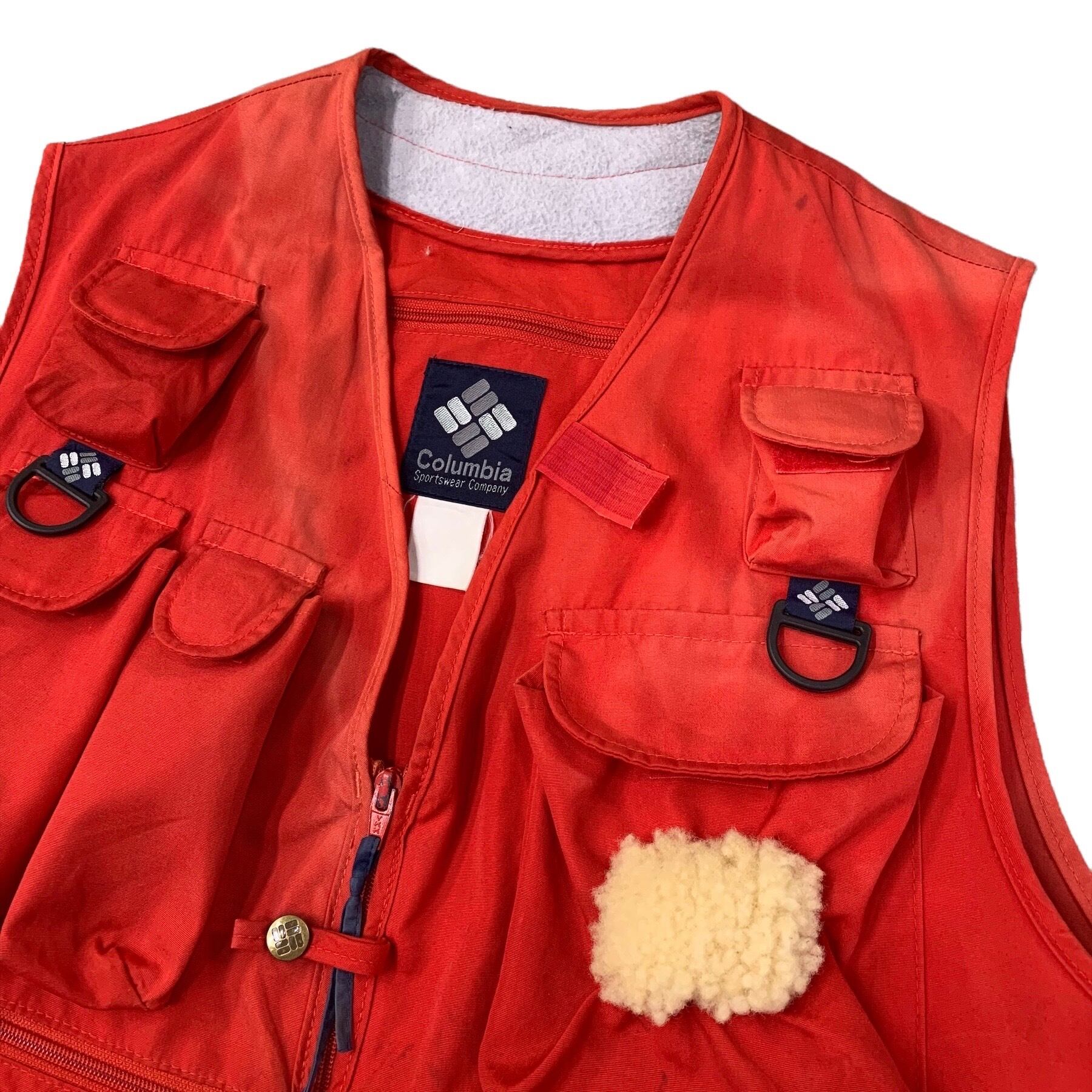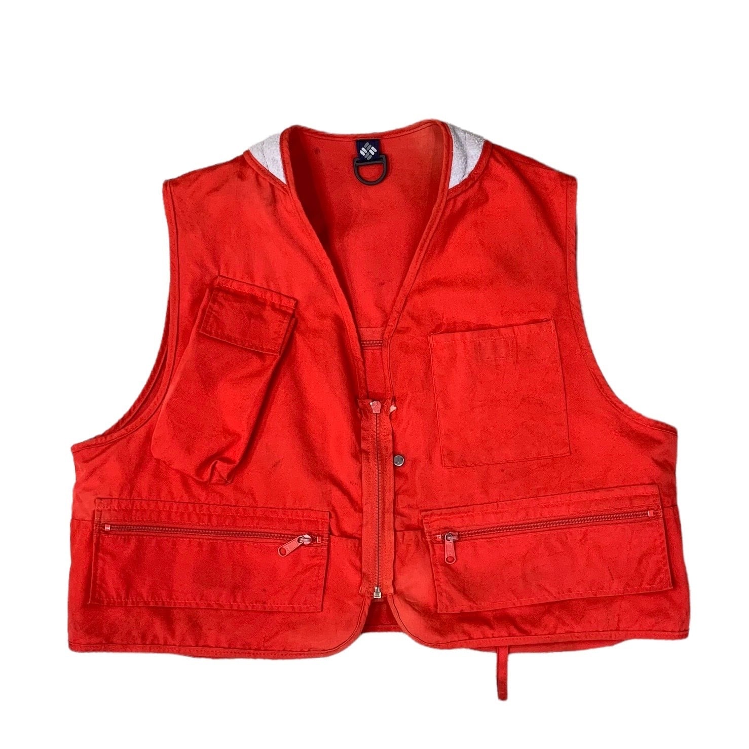 1237. 80's Columbia fishing vest フィッシングベスト レッド 実寸L
