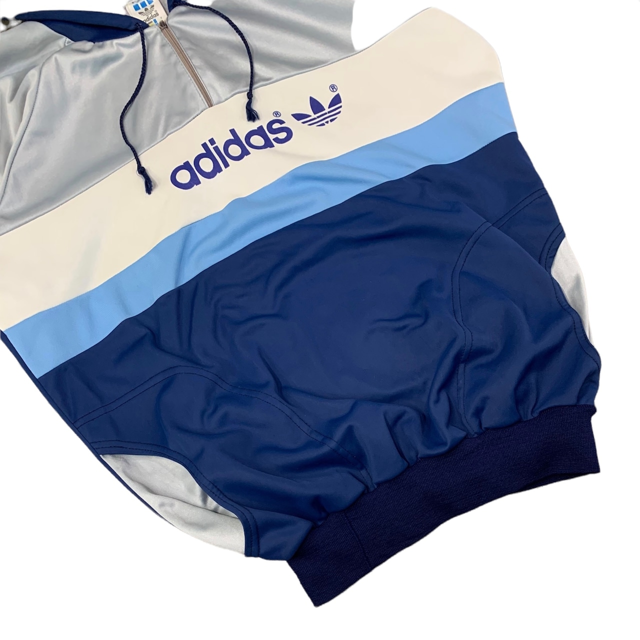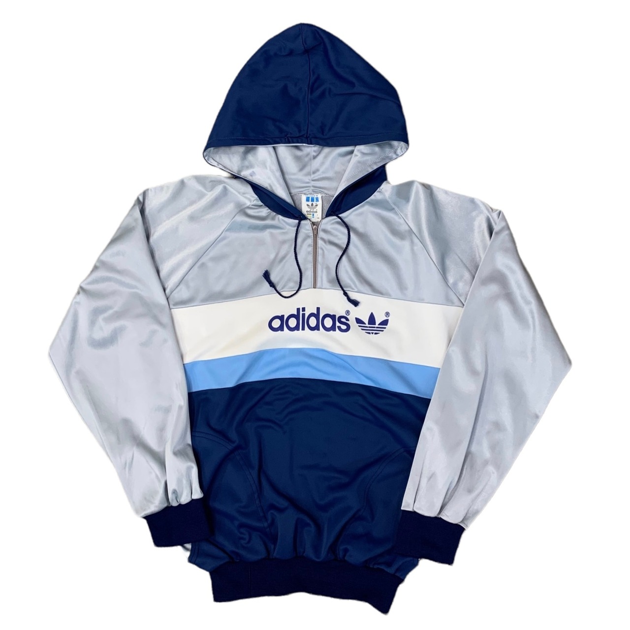 1244. 80's adidas jersey hoodie ジャージ アノラックパーカー ハーフジップ グレー