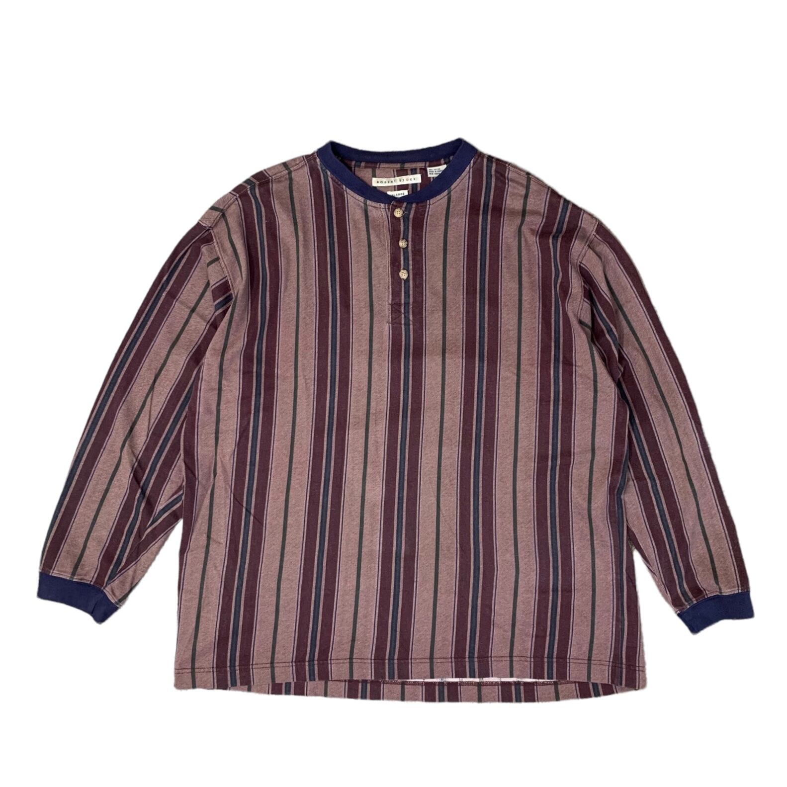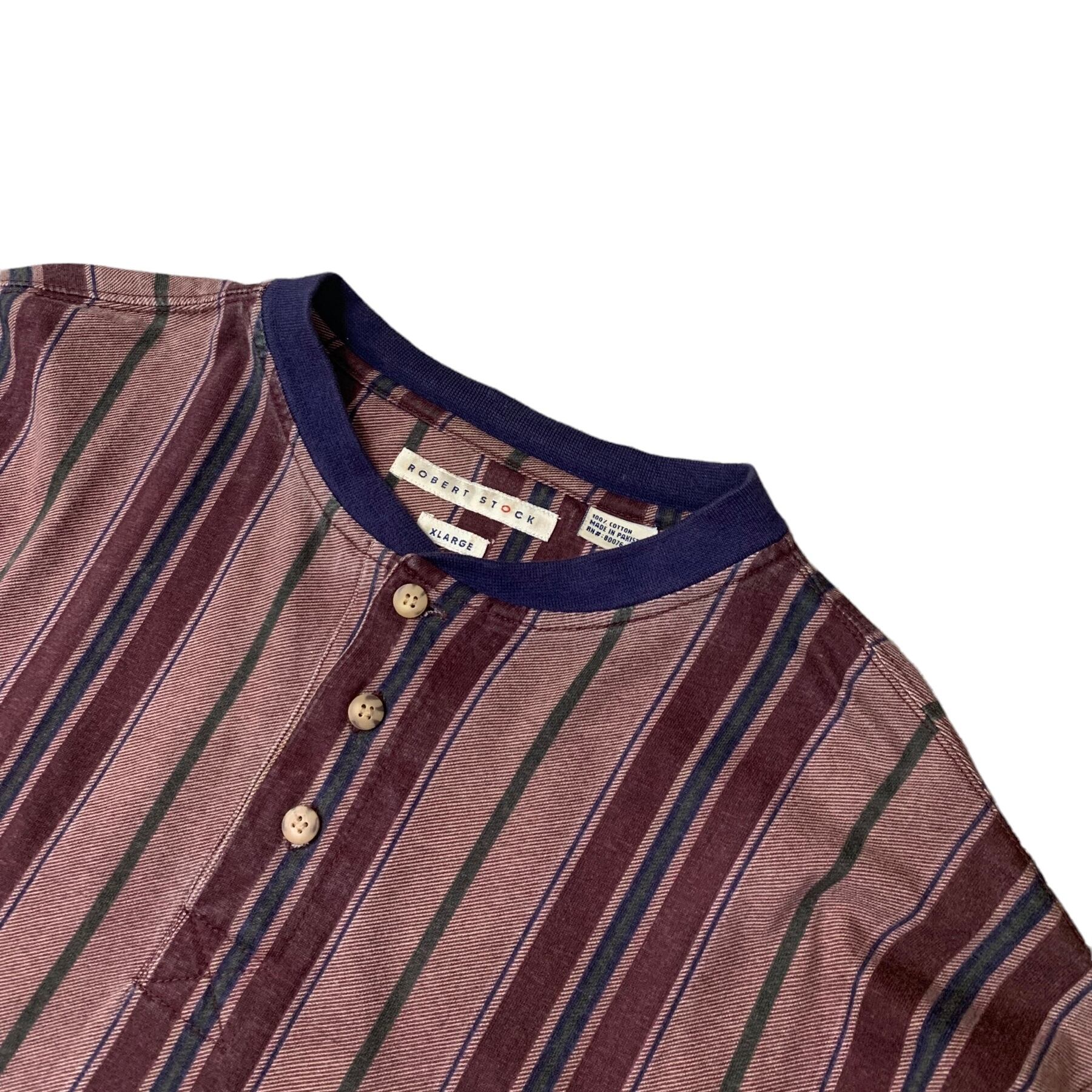 90年代 カットソー ヘンリーネック ブラウンストライプ XL