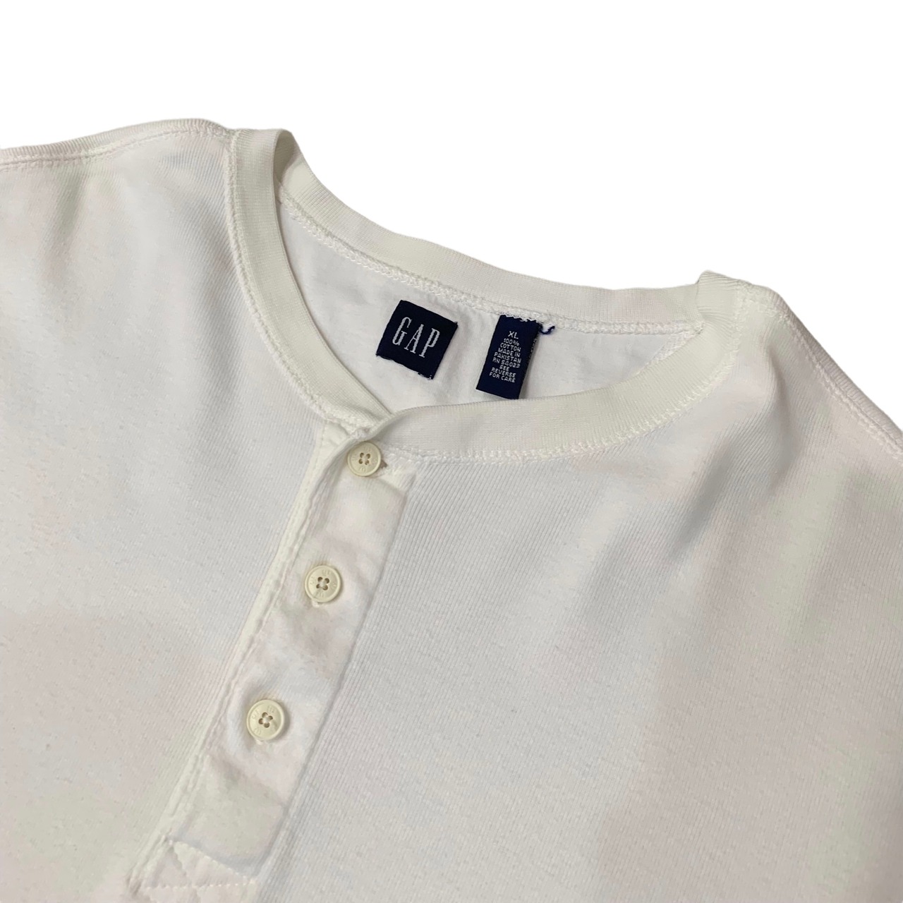 1258. 90's gap white cut&sewn 無地 カットソー ヘンリーネック ホワイト XL